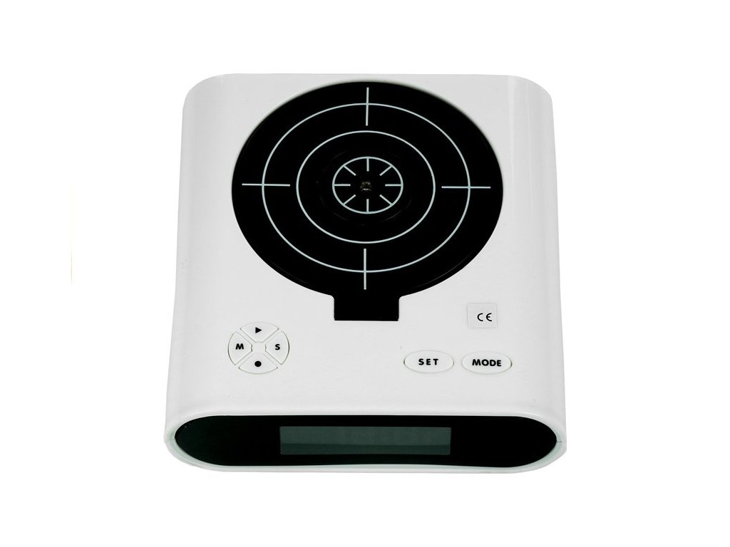 Elektronický budík — laserová pištoľ s bielym