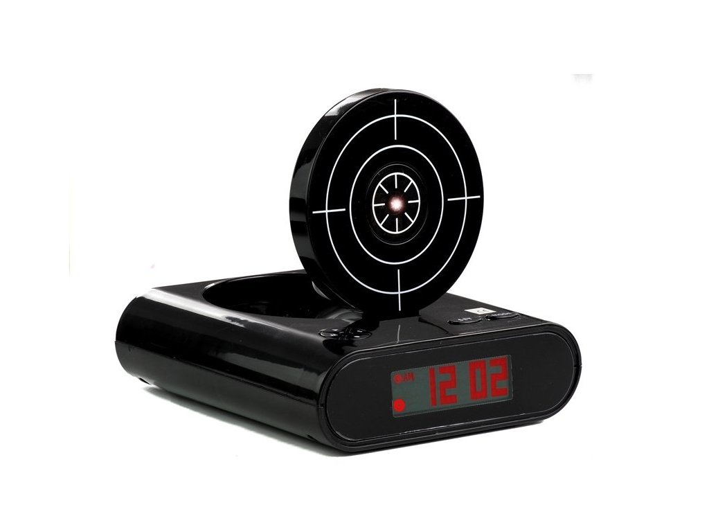 terčom Tento moderný budík v podobe sniperky prebudí aj tých najtvrdších spáčov. Vypnúť ho nie je také jednoduché, ako by sa mohlo zdať — pištoľ s červeným svetelným lúčom musíte rýchlym pohybom ruky namieriť na terč. Táto súprava bude tiež senzačným gadgetom pre všetkých fanúšikov inovatívnych riešení. Neobmedzujme úlohu budíka len na uľahčenie nášho života — môže byť aj nezvyčajnou dekoráciou do akejkoľvek miestnosti alebo spálne.