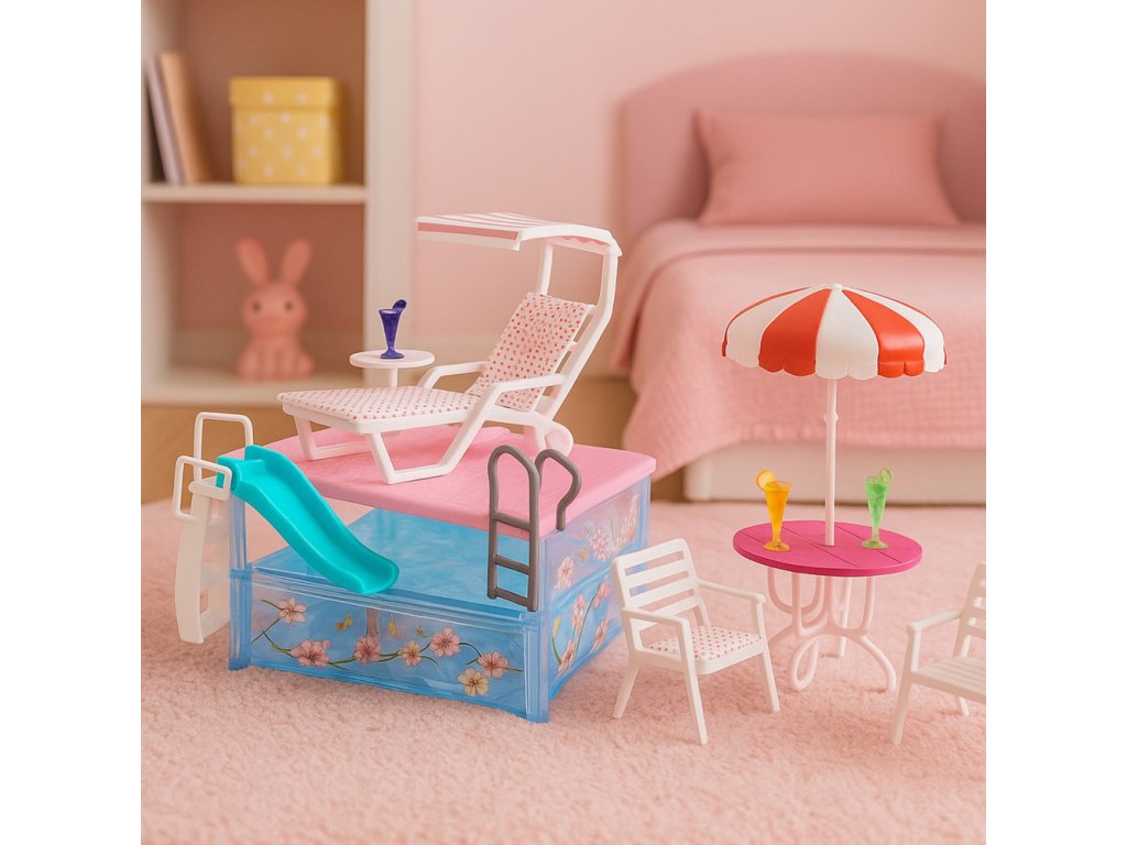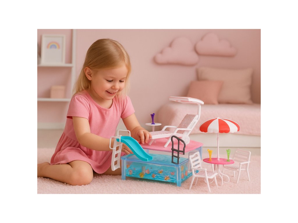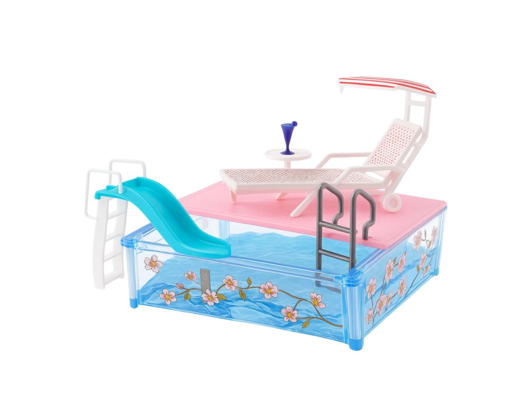 Letovisko Set pre bábiky Bazén Šmykľavka Lehátka Dáždnik