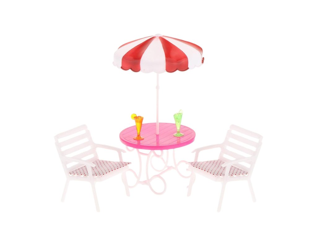 Súprava obsahuje aj ľahký slnečník, sadu stoličiek a stôl, ktoré vytvárajú ideálne miesto na relaxáciu vonku. Súprava obsahuje aj plážové lehátko, ktoré je skvelým doplnkom k voľnočasovým scénam. Všetky prvky sú vyrobené z estetického a odolného plastu, vďaka čomu sú atraktívne a odolné voči každodennému hraniu.