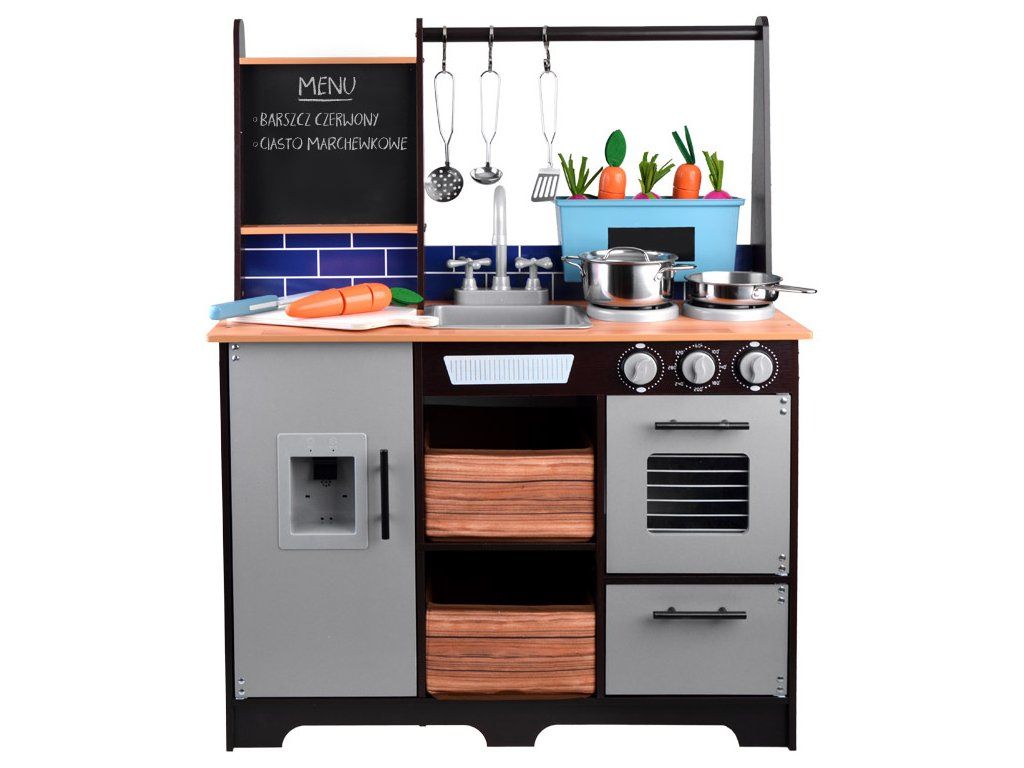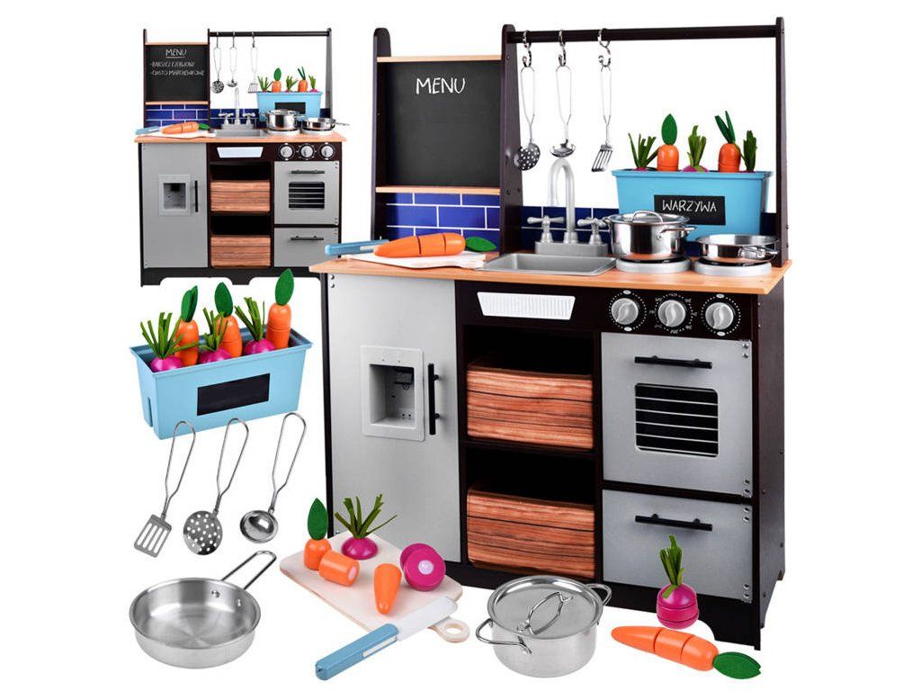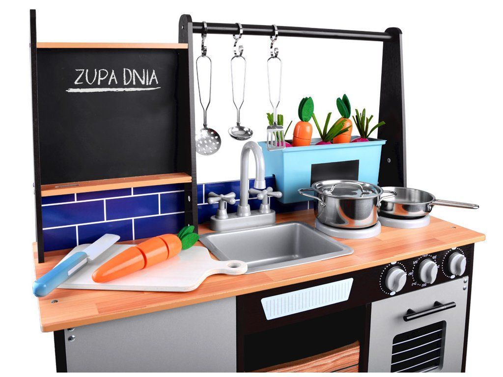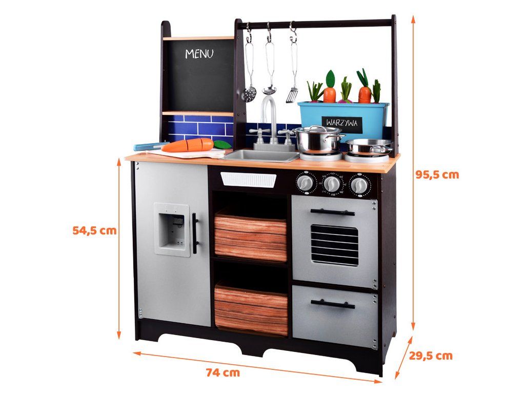 Drevená kuchyňa v štýle loft určite osloví deti, ale aj rodičov. Naživo pôsobí úžasným dojmom, až sa v nej chce variť, tráviť čas, pripravovať jedlá a krájať (a je z čoho). Drevená kuchyňa s množstvom doplnkov a príslušenstva splní požiadavky nejedného kulinárskeho virtuóza.