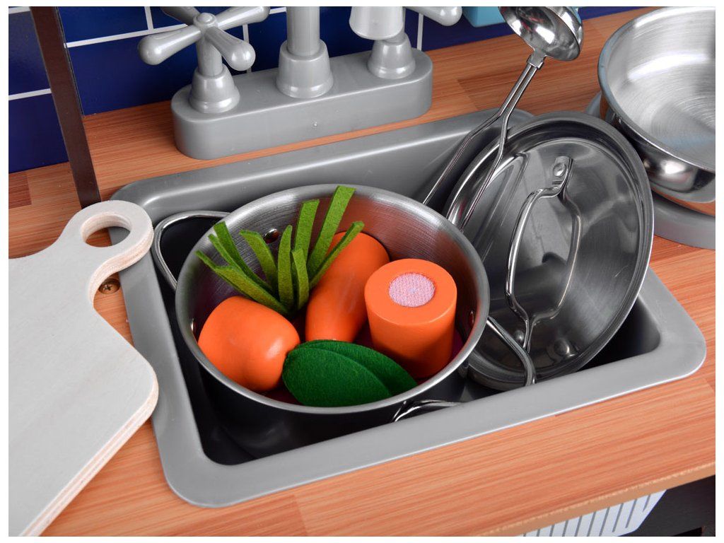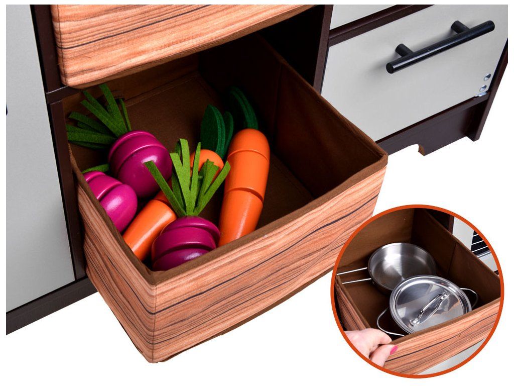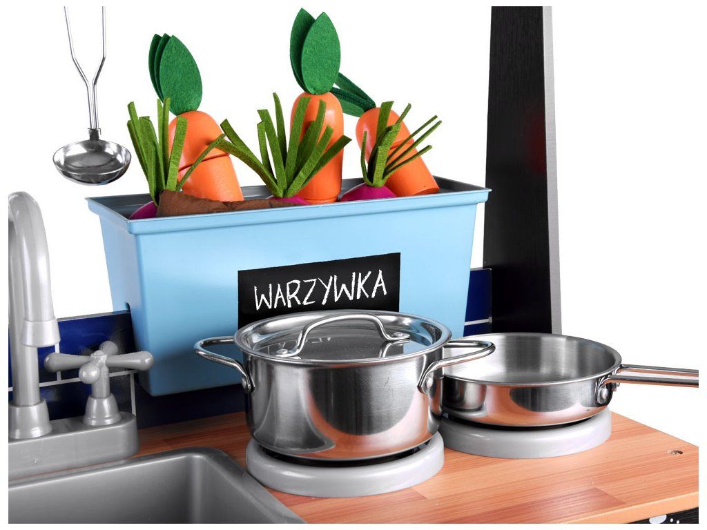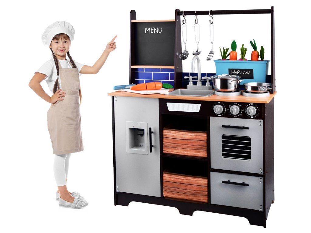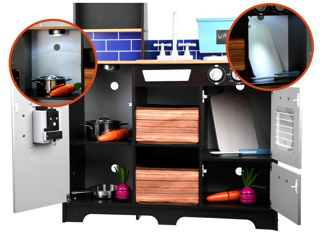 Drevená kuchyňa v štýle loft určite osloví deti, ale aj rodičov. Naživo pôsobí úžasným dojmom, až sa v nej chce variť, tráviť čas, pripravovať jedlá a krájať (a je z čoho). Drevená kuchyňa s množstvom doplnkov a príslušenstva splní požiadavky nejedného kulinárskeho virtuóza.