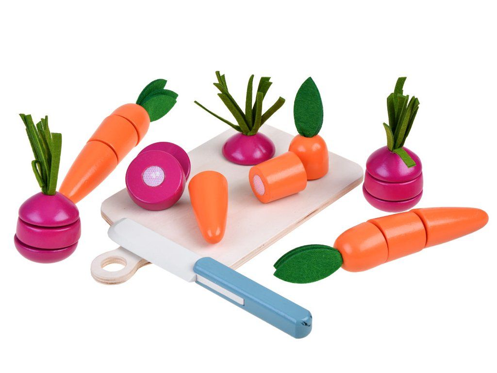 košíky – zelenina na krájanie na suchý zips: 3 x mrkva, 3 x červená repa