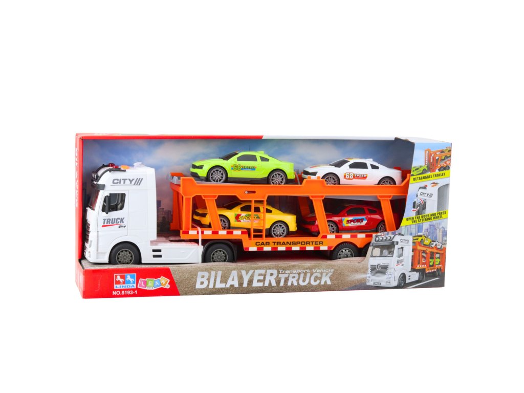 Tento veľký nákladný automobil – odťahovka so štyrmi hračkárskymi autami – je súprava, ktorá poteší každého malého fanúšika motorizmu. Jeho realistický vzhľad, svetelné a zvukové efekty a ďalšie hračkárske autá robia hru vzrušujúcou a plnou kreatívnych scenárov.