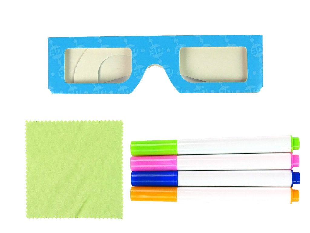 Magické podsvietené 3D okuliare na bielu tabuľu modré