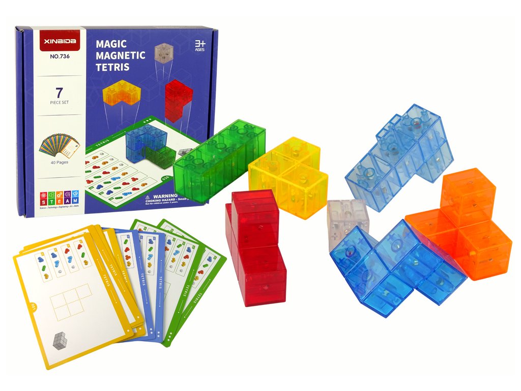 Sada magnetických kociek pozostávajúca zo siedmich kociek rôznych farieb, ktoré sú predovšetkým priehľadné. To znamená, že vaše dieťa môže nielen vytvárať trojrozmerné štruktúry, ale aj experimentovať s svetelnými efektmi.