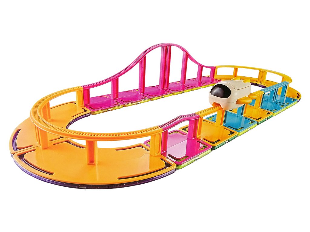 Súprava obsahuje knihu nápadov a 29 dielov, ktoré vaše dieťa môže spojiť a vytvoriť tak pretekársku dráhu. Každý geometrický diel obsahuje magnety, ktoré sa ľahko spájajú, sú odolné proti korózii, bezpečné a trvácne.