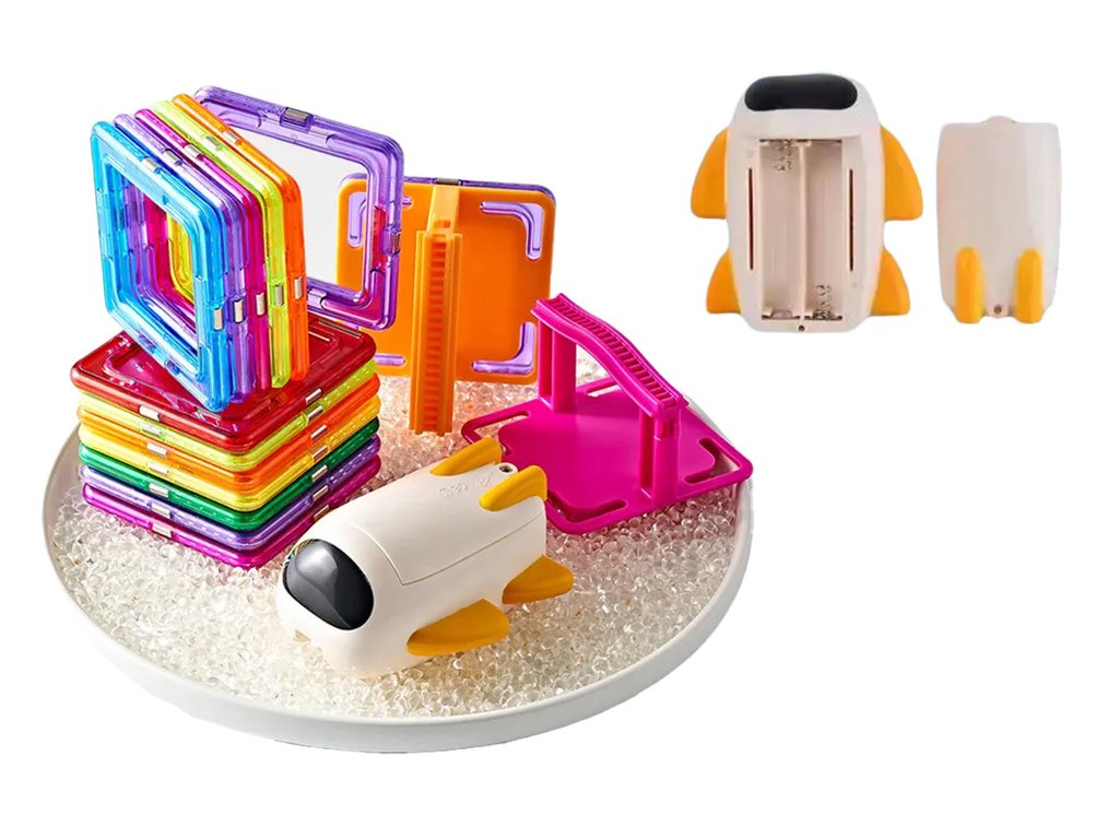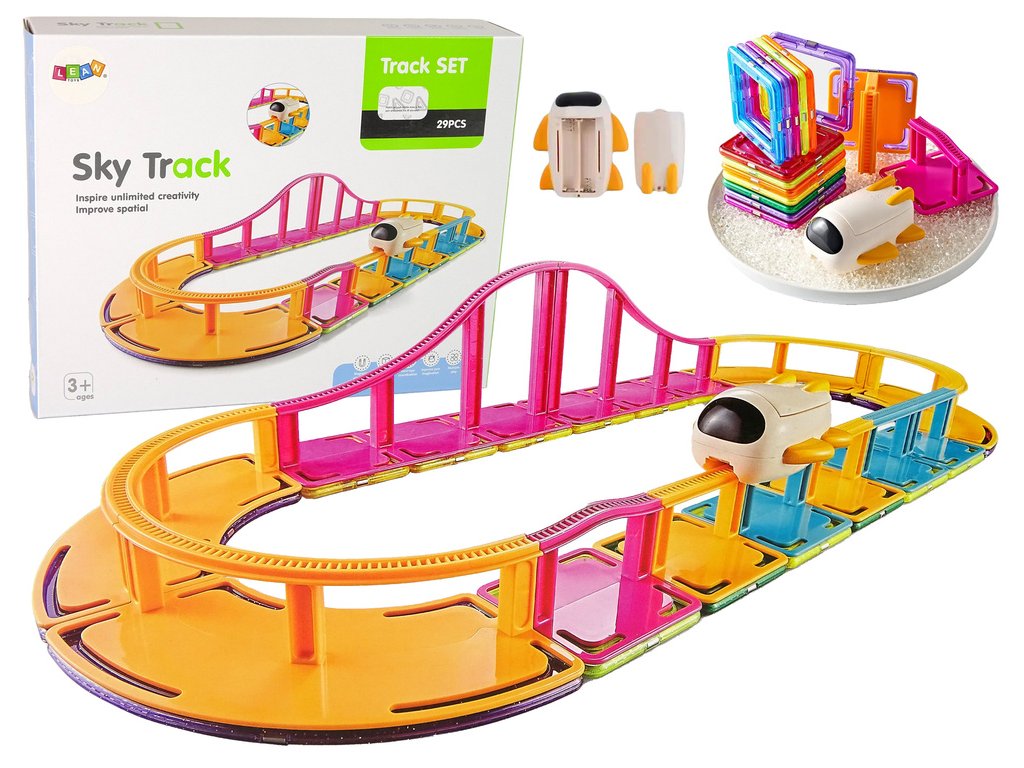Magnetické hračky Sky Track s rôznymi farbami a tvarmi môžu deťom pomôcť pochopiť farby a geometrické tvary. Magnetické kocky umožňujú chlapcom a dievčatám stimulovať ich fantáziu a začať sa hrať s vesmírnym raketoplánom.