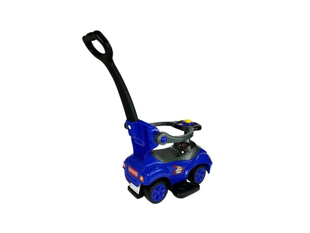 Súprava sa skladá z plastovej karosérie, tlačnej tyče, opierok na nohy, bezpečnostných tyčí, kolies, otočného volantu, operadla, zadnej opory, nápravy a ozdobných krytov kolies. Veľkou výhodou auta je, že sa dá ľahko premeniť z tlačnej hračky na jazdeckú hračku – stačí odstrániť stúpadlá, bezpečnostné tyče a tlačnú tyč a vaše dieťa ho môže riadiť samo. Sedadlo hračky sa dá zdvihnúť – priestor pod ním môžete využiť na uloženie obľúbených hračiek vášho dieťaťa alebo napríklad na prezlečenie. Tlačidlo uprostred volantu je pískacie.