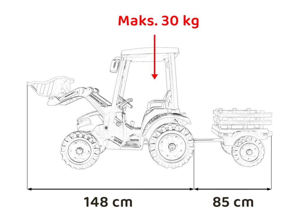 - Rozmery vozidla s prívesom: Dĺžka 233 cm, Šírka 72 cm, Výška 104 cm,