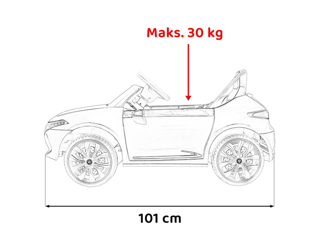 | Rozmery vozidla: | Dĺžka 101 cm,Šírka 69 cm,Výška 53 cm |
