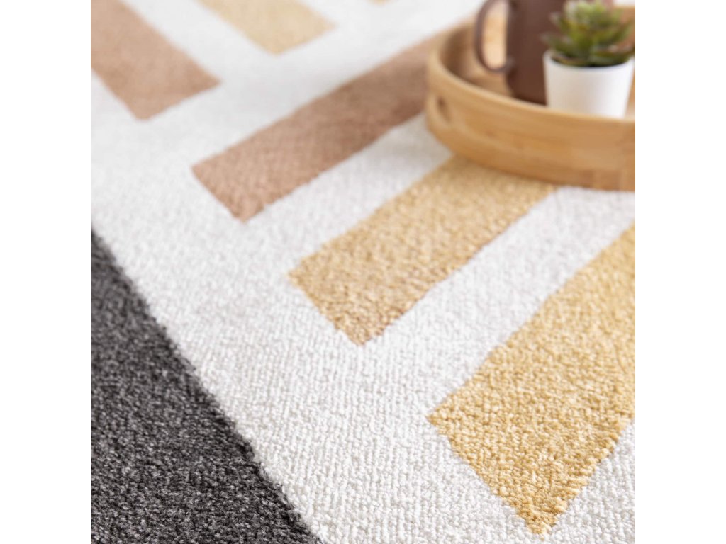 Vyrobený z kvalitného polypropylénu, koberec je odolný voči opotrebovaniu, ľahko sa udržiava a zachováva svoj pôvodný vzhľad aj pri každodennom používaní. Carving technika dodáva povrchu plastickosť a príjemný dotyk, vďaka čomu sa koberec stane ústredným bodom vašej obývačky, spálne či pracovne.