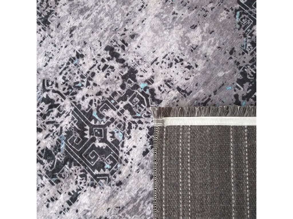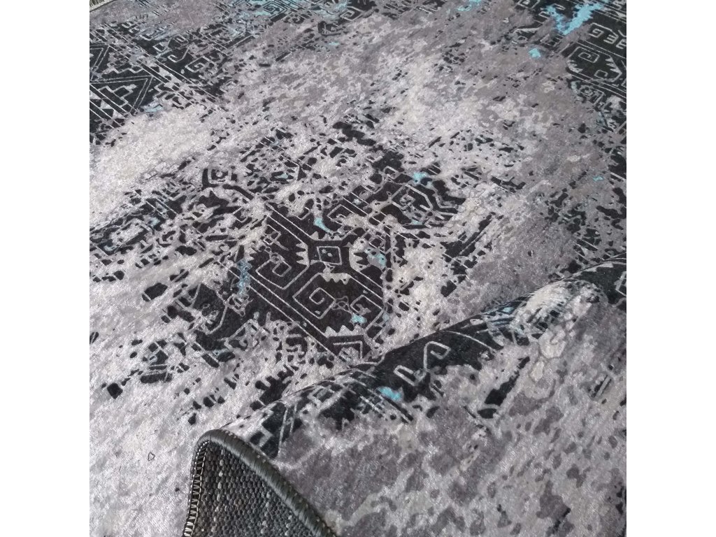 Moderný koberec s abstraktným vzorom Efes 100 je ideálnou voľbou pre interiéry, ktoré chcú pôsobiť originálne a nadčasovo. Jeho dizajn pripomína moderné umelecké plátno, kde sa elegantná sivá, hlboká čierna a osviežujúca modrá farba prirodzene prelínajú do harmonického celku.