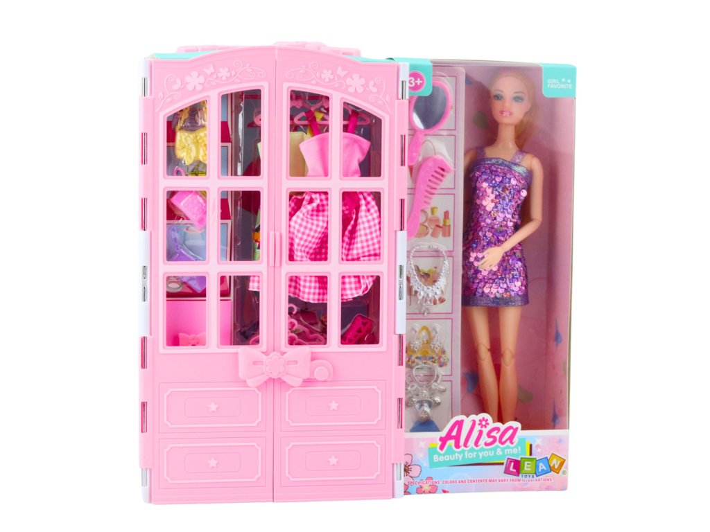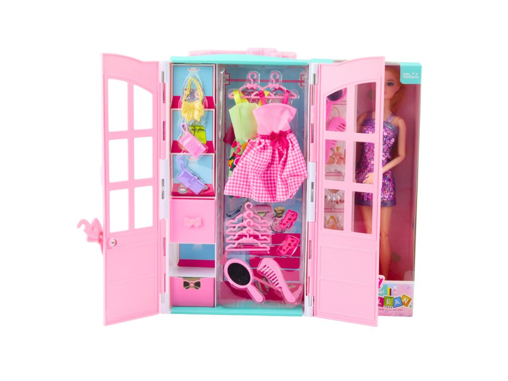 Šatník má otváracie dvere a police s doplnkami – farebnými šatami, vešiakmi na oblečenie, topánkami, kabelkami, šperkami a kaderníckymi doplnkami. Vďaka zrkadlu a hrebeňu sa bábika môže pripraviť na každú príležitosť a rôzne prvky sady umožňujú hrať mnoho každodenných scenárov.