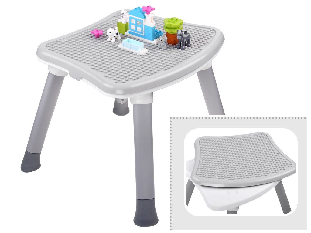Stolík s doskou na skladanie kociek – špeciálna doska s výstupkami pasuje okrem iného na kocky typu Duplo a zabezpečuje pohodlné a stabilné miesto na tvorbu konštrukcií.