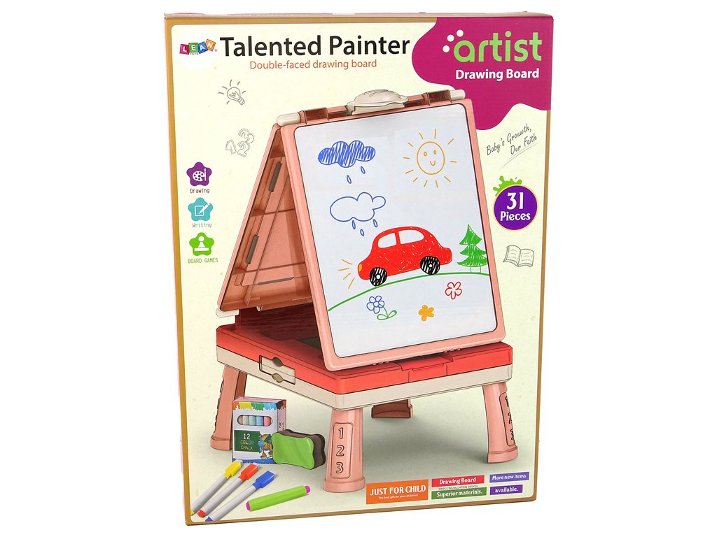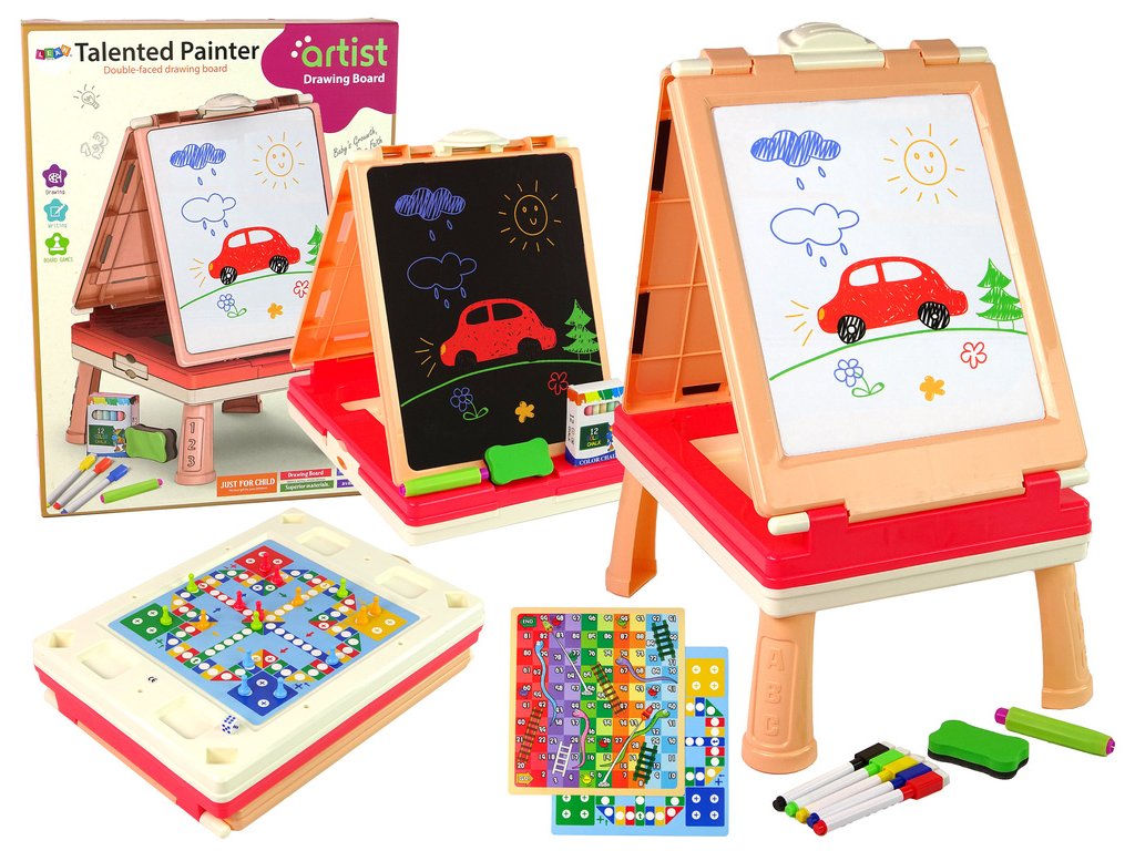 Táto multifunkčná doska je jedinečná hračka, ktorá poteší nielen umelcov, ale môže byť aj vzdelávacou pomôckou pre malých výskumníkov. Vďaka ružovej farebnej kombinácii sa perfektne hodí do detskej izby.