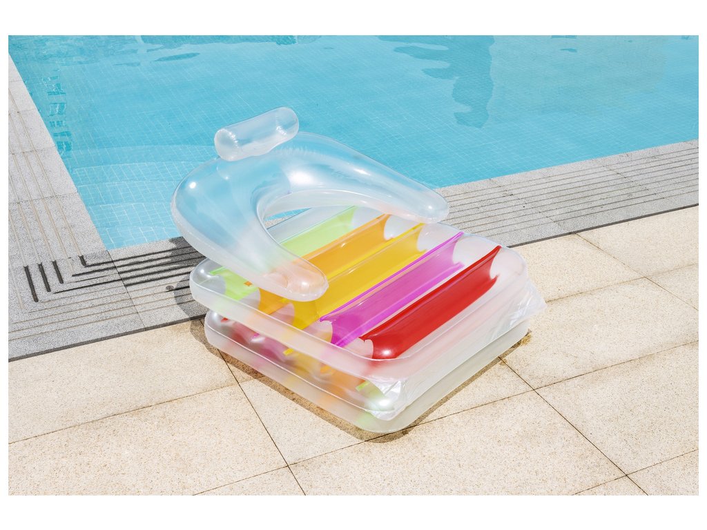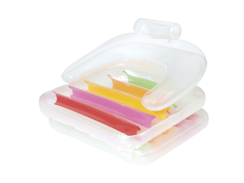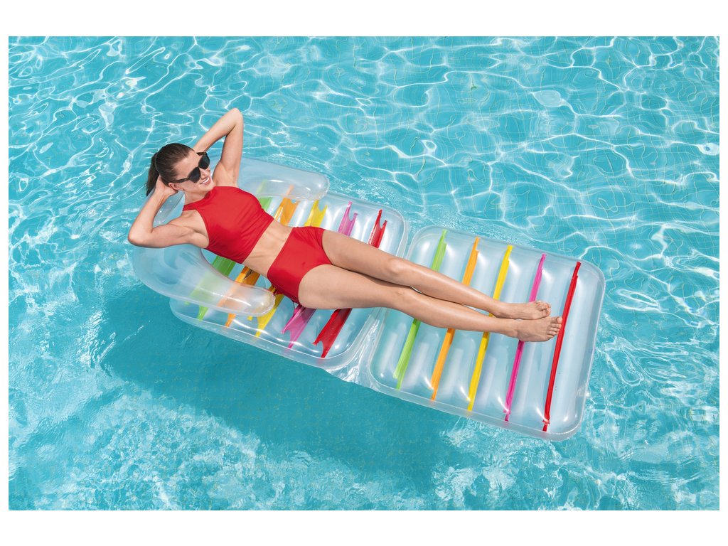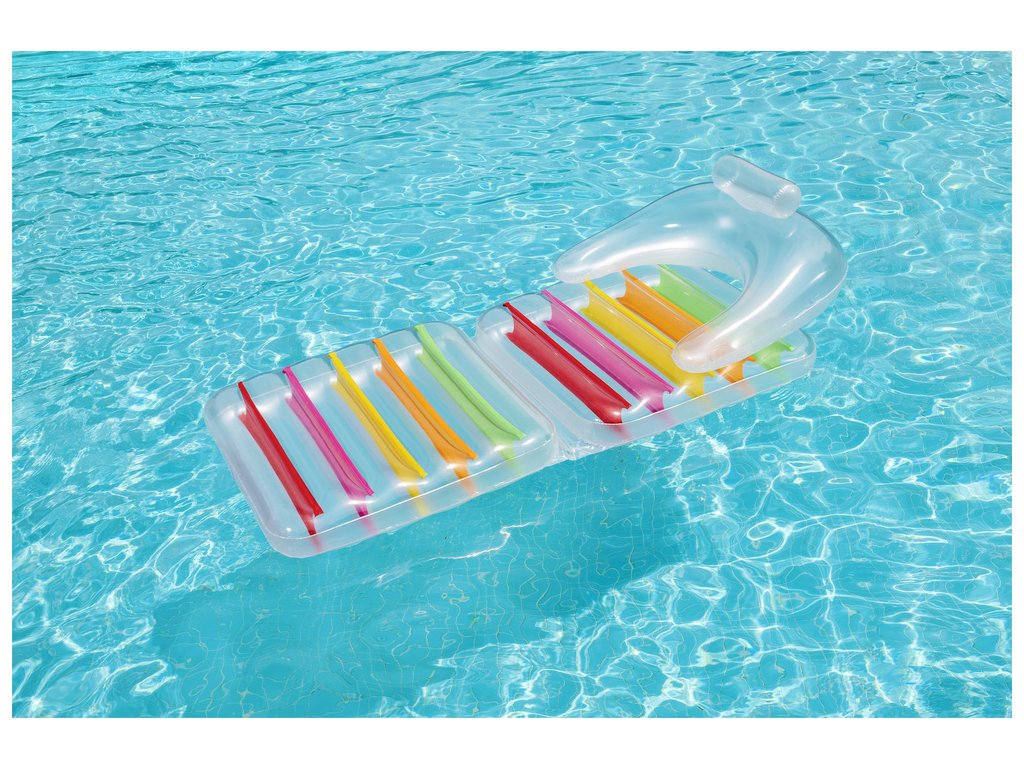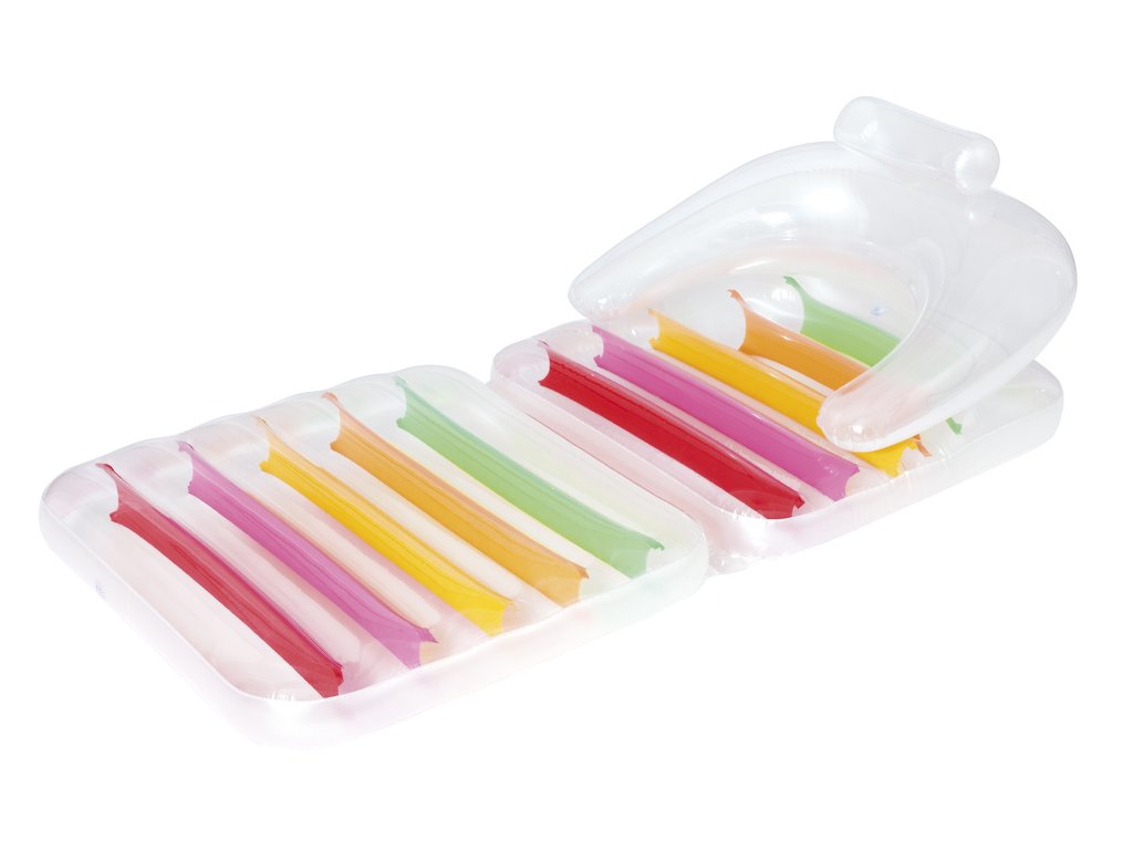 Tento veľmi pohodlný a praktický matrac bude užitočný pre všetkých milovníkov vody a trávenia času na pláži. Matrac môžete používať ako klasický matrac na plávanie a opaľovanie alebo ako kreslo. Ďalšou výhodou, ktorá vám zaručí pohodlie a relax, sú podrúčky a nafukovacie operadlo. Určite sa vám budú páčiť klasické biele prvky v kombinácii s dúhovými prvkami.