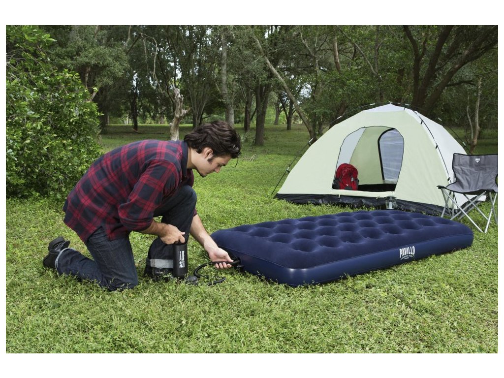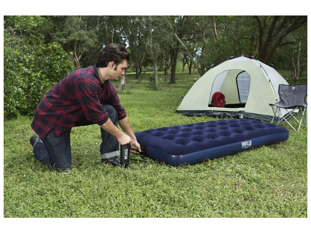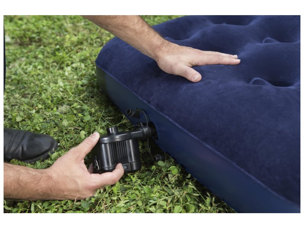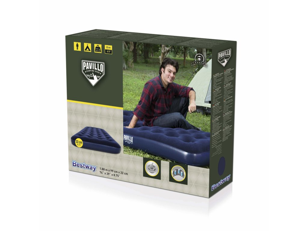 Tento cestovný matrac je určený na použitie v interiéri aj exteriéri. Je vyrobený z odolného materiálu, vďaka čomu je odolný voči poškodeniu. Horná časť je pokrytá mäkkým flokovaným materiálom. Matrac sa perfektne prispôsobí telu. Môže sa používať ako matrac počas výletu k vode alebo ako náhradná posteľ pre hostí. Bez obáv vydrží takmer akýkoľvek terén. Matrac je určený na jedno použitie a má ventil na rýchle nafúknutie, vďaka čomu je veľmi ľahké a rýchle ho pripraviť na použitie.