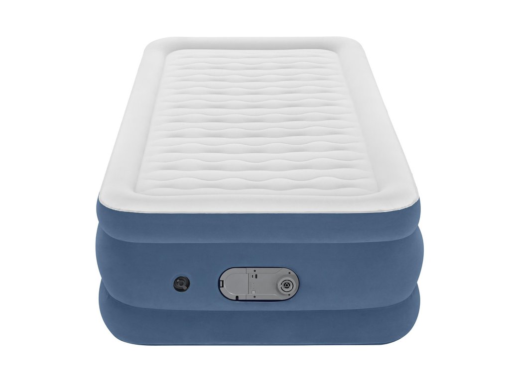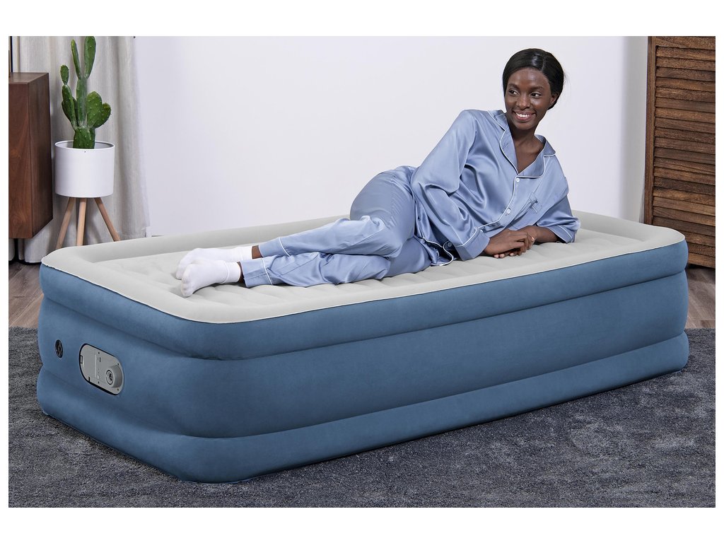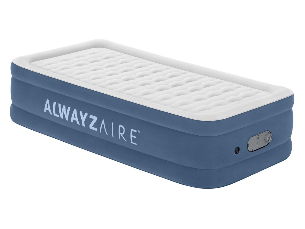 Nafukovacia matrac Bestway z kolekcie AlwayzAire je moderné riešenie, ktoré zaručuje maximálny komfort spánku a funkčnosť. Matrac je vybavený inovatívnou pumpou AlwayzAire, ktorá automaticky reguluje tlak vzduchu počas celej noci, čím eliminuje riziko vyfúknutia – nebudete sa prebúdzať na podlahe. Ľahký, mäkký velúrový poťah je príjemný na dotyk a ľahko sa udržiava v čistote. Dodatočný okraj umožňuje nasadiť napínacie prestieradlo, takže po ustlaní matrac vyzerá ako klasická posteľ. Vďaka zvýšenému dizajnu (46 cm) je ľahšie vstávať a ľahnúť si do postele a bočný rám zabraňuje skĺznutiu počas spánku.