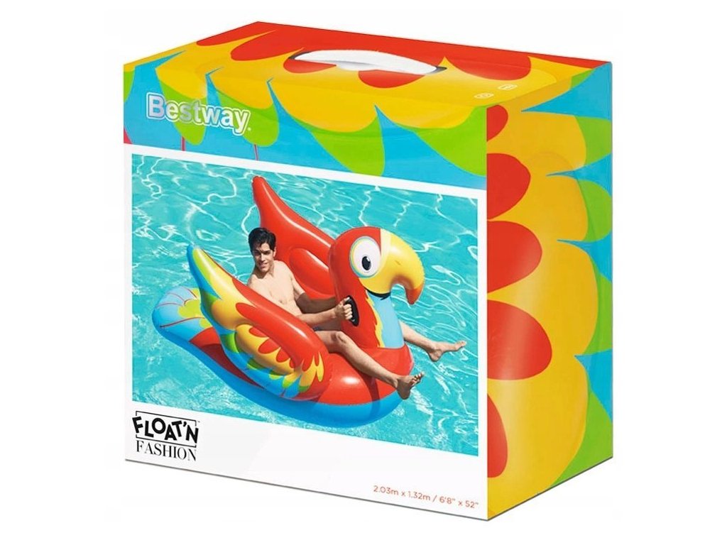 Nafukovacia matrac Papagáj je skvelým spôsobom, ako si oddýchnuť v lete. Jeho krásne farby a originálny tvar potešia všetkých milovníkov vodných radovánok. Pridá rozmanitosť vašej letnej zábave a umožní vám relaxovať. Papagáj má na oboch stranách dve stabilné rukoväte a široké sedadlo, ktoré zaisťuje stabilitu a pohodlie pri používaní. Tento nafukovací plavecký doplnok bude fungovať dobre za všetkých podmienok, či už na mori, jazere alebo v bazéne. Je vyrobený z odolného vinylového materiálu s hrúbkou 0,32 mm, vďaka čomu je odolný voči mechanickému poškodeniu aj poškodeniu spôsobenému slnečným žiarením alebo morskou vodou.