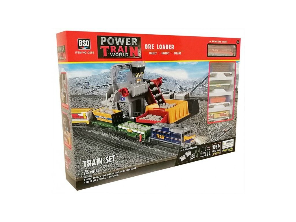 | - koľajnice s výhybkami (+1067 cm), - lokomotíva s reguláciou rýchlosti, - 4 nákladné vagóny, - baňa s pohyblivými komponentmi, - 2 tunely, - zábrany, značky, - dekoratívne doplnky: stromy, - farebné balenie, ideálne ako darček. | |