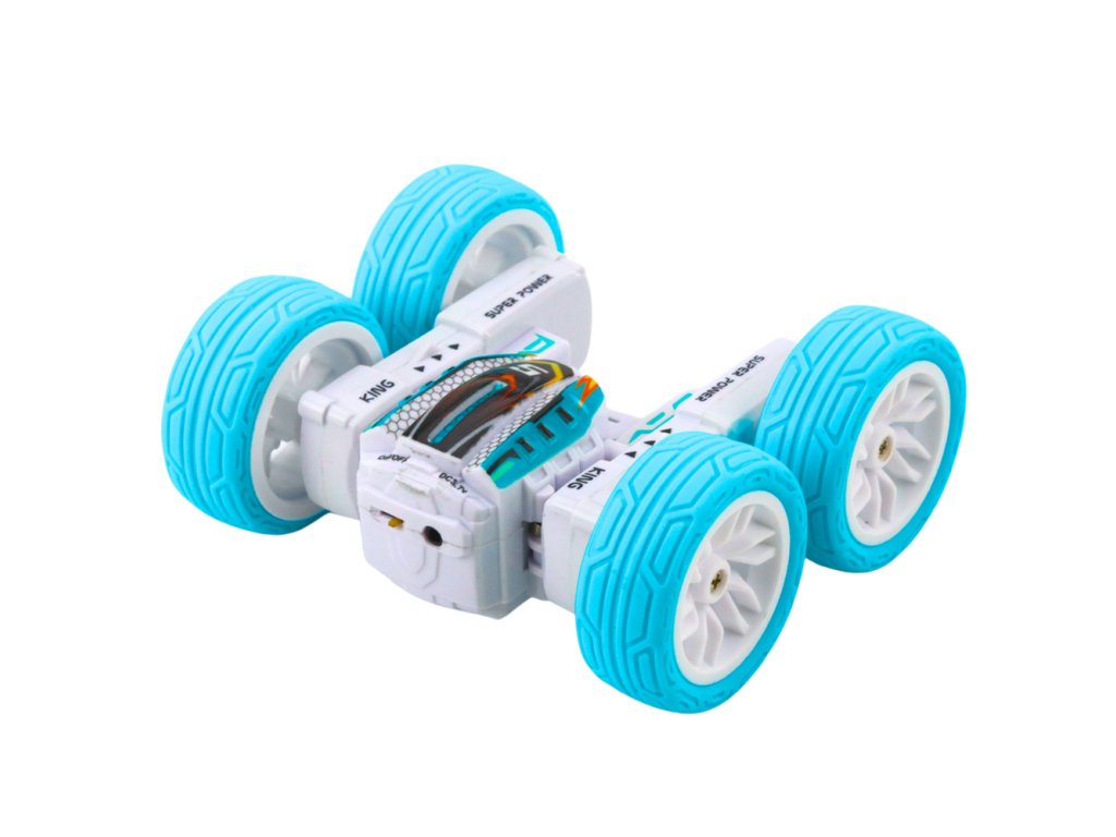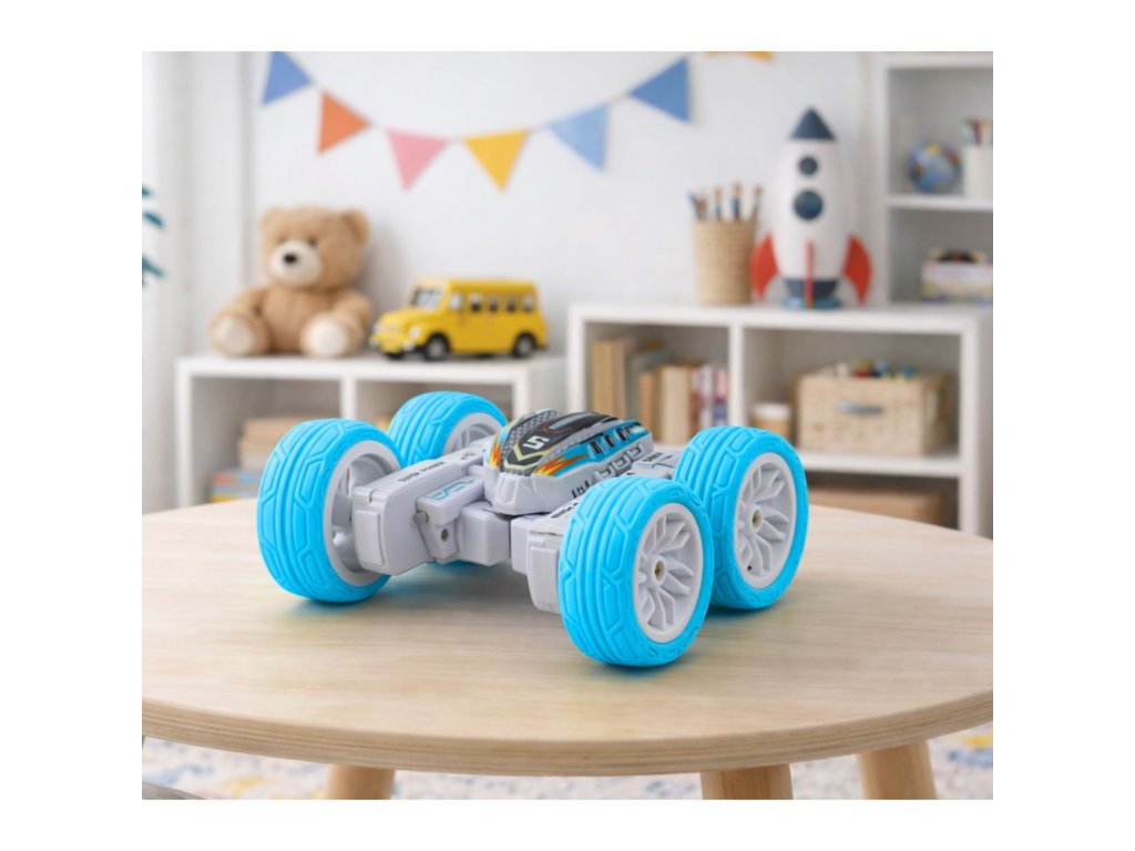 Pevná konštrukcia z vysoko kvalitných materiálov zaručuje odolnosť voči nárazom a intenzívnemu používaniu pri každodennom hraní. Auto je určené na akrobatickú jazdu a ponúka možnosť vykonávať efektné otočky o 360 stupňov, jazdu v oboch smeroch a pohyb v rôznych smeroch. Gumové pneumatiky zaručujú dobrú priľnavosť k povrchu, čo zvyšuje kontrolu nad vozidlom aj pri dynamických manévroch.