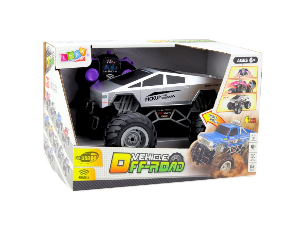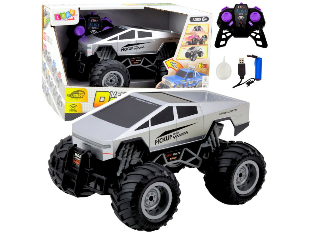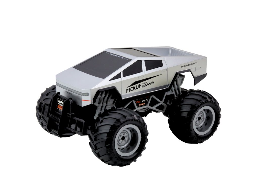 Diaľkovo ovládané terénne vozidlo PICKUP TRUCK RC v mierke 1:16 je robustná a impozantná hračka pre deti od 6 rokov. Model vyniká realistickým vzhľadom, veľkými terénnymi kolesami a pružinovým odpružením, ktoré mu umožňujú jazdu v nerovnom teréne. Agresívny dizajn v striebornej farbe podčiarkuje moderný charakter vozidla.