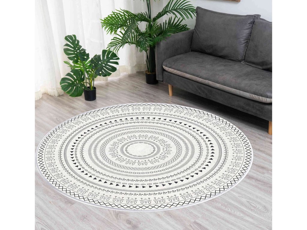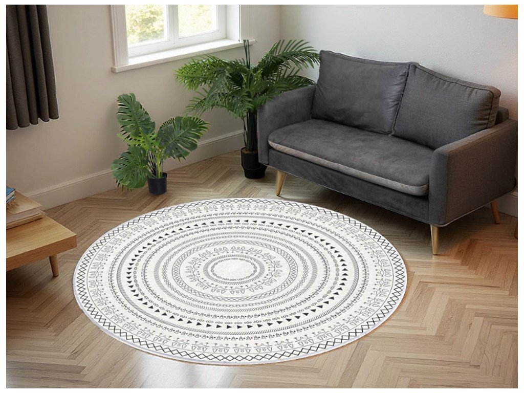 Okrúhly vzorovaný koberec Tina vyniká jemným orientálnym vzorom, ktorý dodá priestoru originalitu, harmóniu a nadčasový štýl. Je ideálny do moderných, boho aj škandinávskych interiérov, kde slúži ako výrazný dekoračný prvok aj praktický doplnok. Precízne spracovaný vzor v neutrálnych tónoch vytvára vizuálne zaujímavý efekt, ktorý elegantne doplní každú miestnosť. Koberec pôsobí ľahko, čistým dojmom a stáva sa prirodzeným centrom priestoru.
