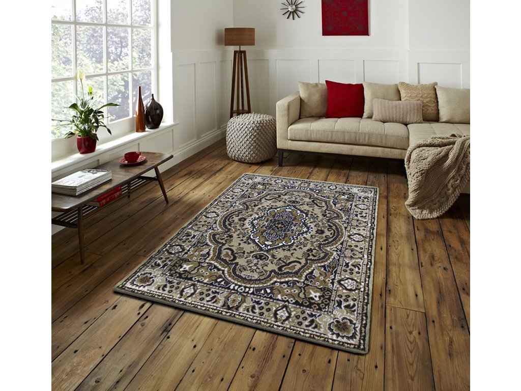 Vďaka príjemnej výške vlasu a optimálnej hmotnosti je príjemný na dotyk a ľahko sa udržiava v čistote. Bohatý orientálny (perzský) vzor v elegantných odtieňoch hnedej, béžovej, krémovej a čiernej farby dodá každej obývacej izbe, spálni alebo kancelárii luxusný a hrejivý charakter. Je tiež vhodný pre miestnosti s podlahovým vykurovaním.