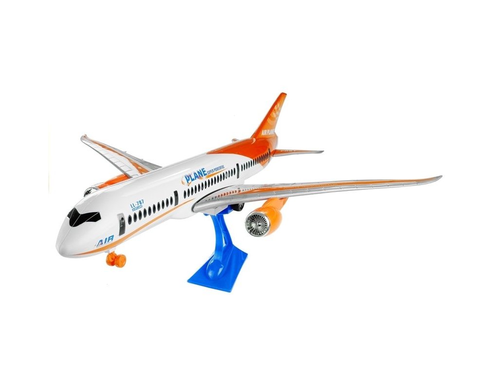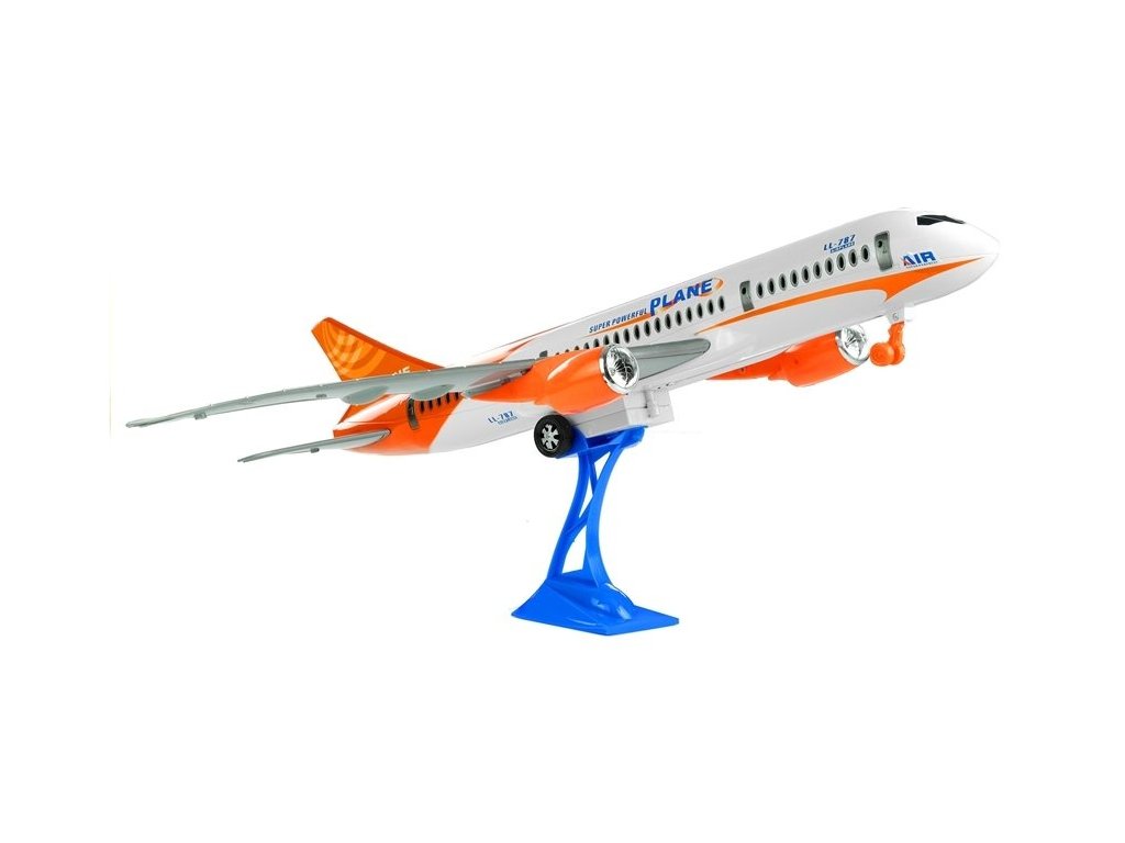 Predstavené lietadlo má štíhly, aerodynamický dizajn. Kombinuje tlmenú bielu farbu s intenzívnou oranžovou, ktorá sa nachádza na chvostovej časti lietadla, ako aj na motoroch a striebornosivých krídlach. Detaily, ako sú farebné pruhy, nápisy a označenia, dodávajú lietadlu realistický vzhľad, čo ďalej stimuluje zrak vášho dieťaťa.