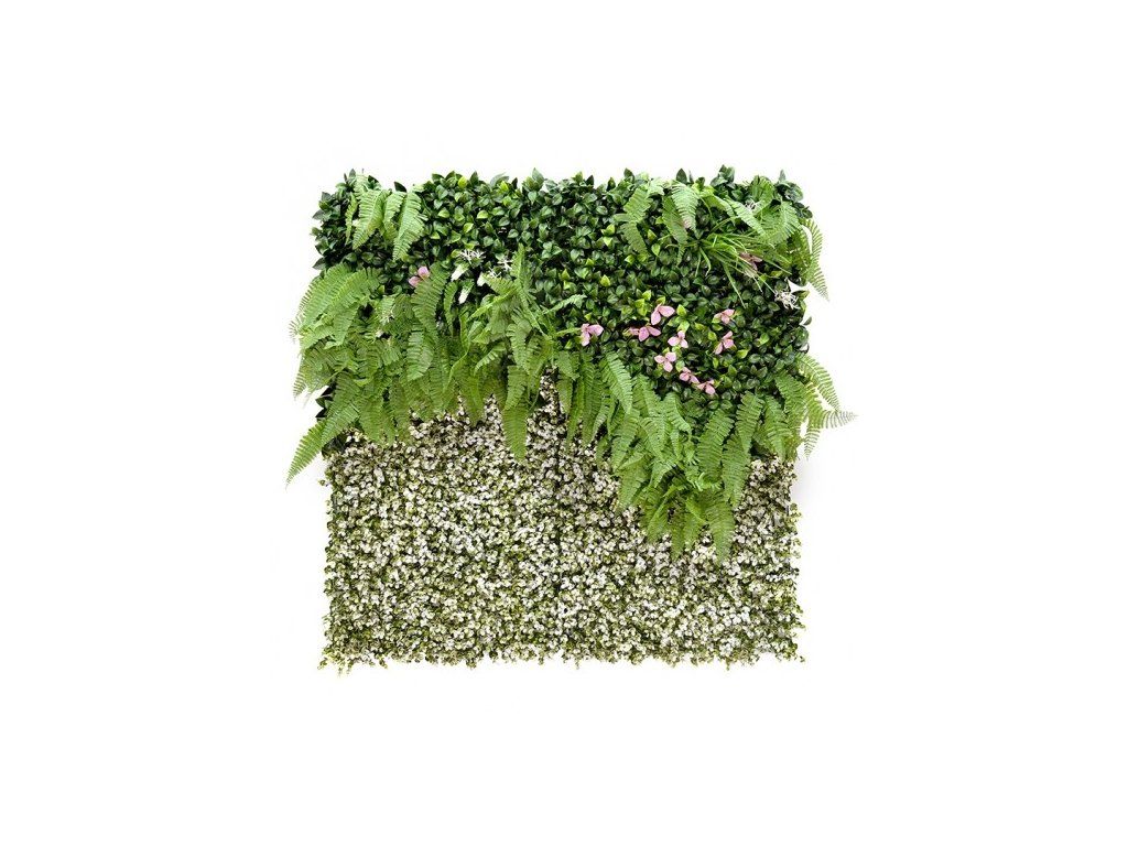 Panel s farebnými rastlinami umožňuje vytvoriť krásnu zelenú dekoráciu. Je odolný a odolný voči poveternostným vplyvom, skvele vyzerá v každom priestore. Panel sa veľmi ľahko inštaluje a je vhodný na dekoráciu interiérov. Hodí sa aj na vonkajšie aranžmány na balkónoch, terasách alebo oploteniach.