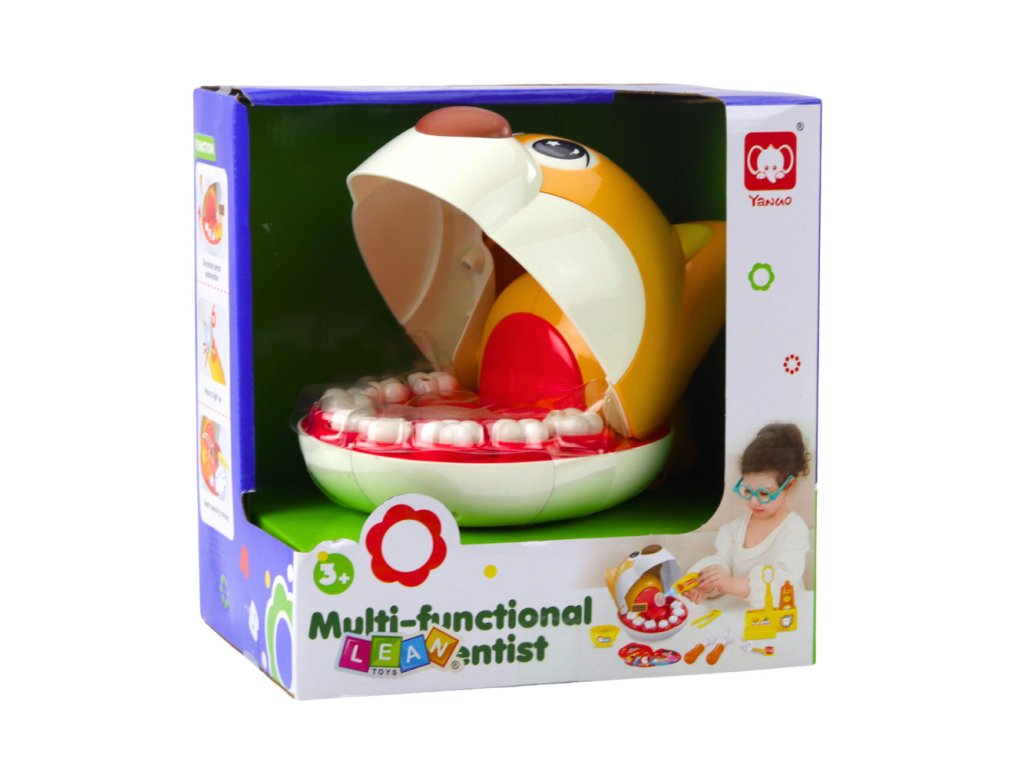 Zubár pre psov je vzdelávacia hračka, ktorá deťom jednoduchým a atraktívnym spôsobom približuje svet zubného lekárstva. Hlava psa s 8 odnímateľnými zubami a bohatou sadou príslušenstva umožňuje realistickú hru na zubára. Deti môžu používať zubnú kefku, vŕtačku, kliešte a batériové osvetlené zrkadlo, aby mohli ešte lepšie skontrolovať stav svojich zubov. Ďalšie prvky, ako tuba zubnej pasty, fľaštičky s liekmi a značkovače s čokoládou a sladkosťami, učia prostredníctvom hry, aká dôležitá je ústna hygiena a zdravé zuby.