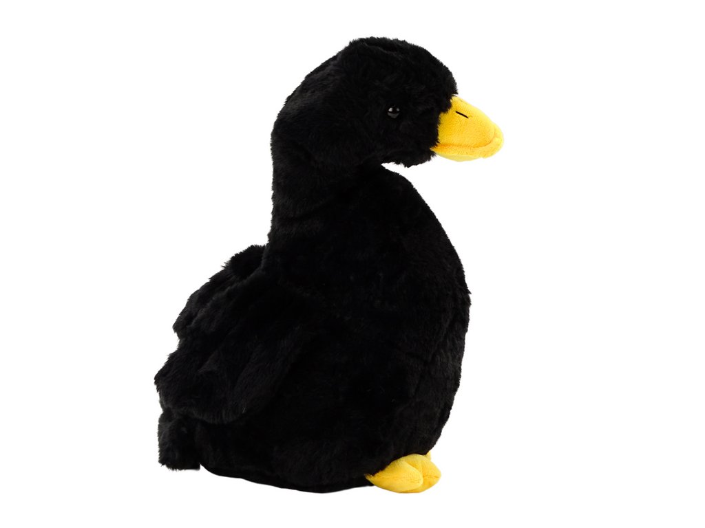 Čierna plyšová hus, ktorá sa stane perfektným spoločníkom na hranie a nádhernou dekoráciou v detskej izbe. Táto rozkošná husa má impozantnú výšku 40 cm, vďaka čomu je dostatočne veľká na to, aby slúžila ako plyšová hračka aj ako mäkký vankúš. Jej jasne žltý zobák a nohy dodávajú charakter a jej čierne krídla krásne ladia so zvyškom jej nadýchaného tela.