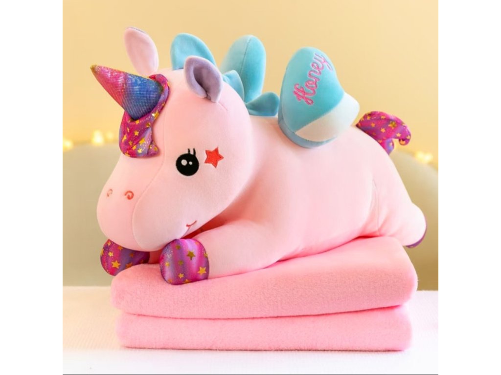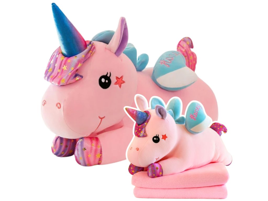 PLYŠOVÁ MASKOTA JEDNOROŽEC PLYŠOVÁ HRAČKA S DEKOU 3 V 1 RUŽOVÁ