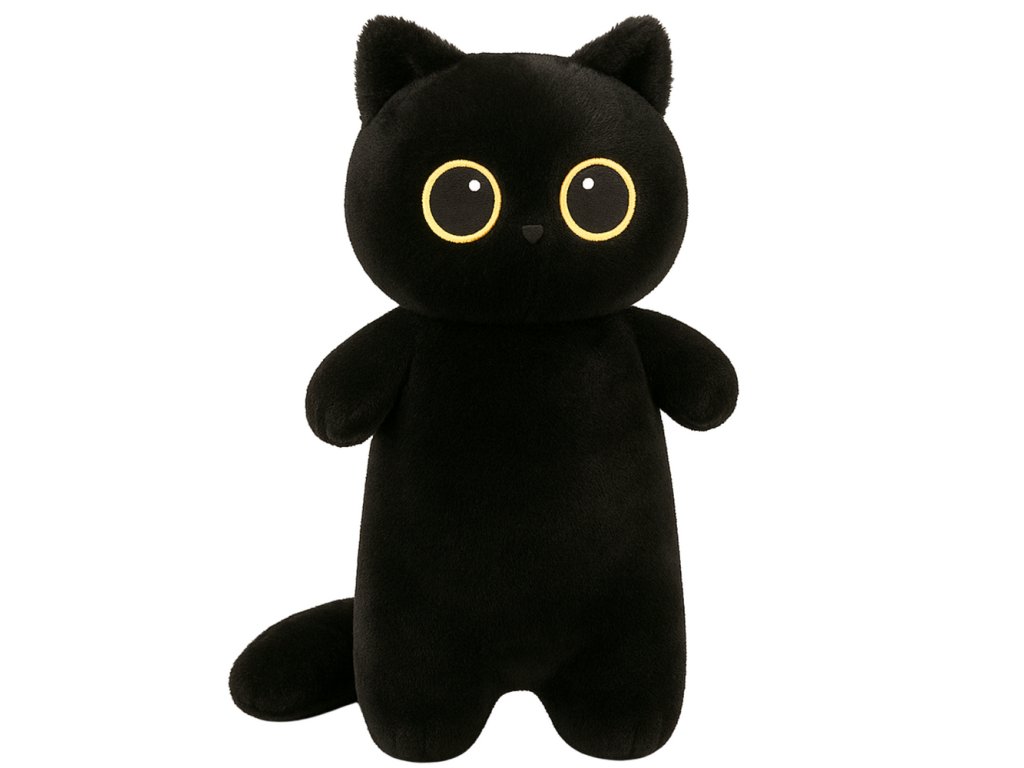 Táto plyšová hračka v tvare čiernej mačky je ideálna pre deti a milovníkov mäkkých, roztomilých plyšových hračiek. Vďaka svojej veľkej veľkosti – 65 cm – je ideálnym spoločníkom na spanie, hranie a ako originálna dekorácia interiéru. Môže úspešne slúžiť nielen ako hračka, ale aj ako dekorácia detskej izby, obývacej izby alebo útulného relaxačného kútika.
