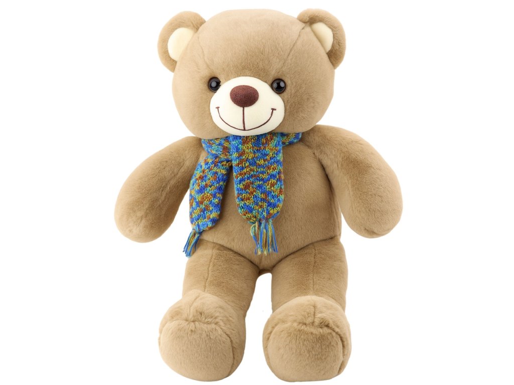 - Plyšový medvedík s farebným šálom
