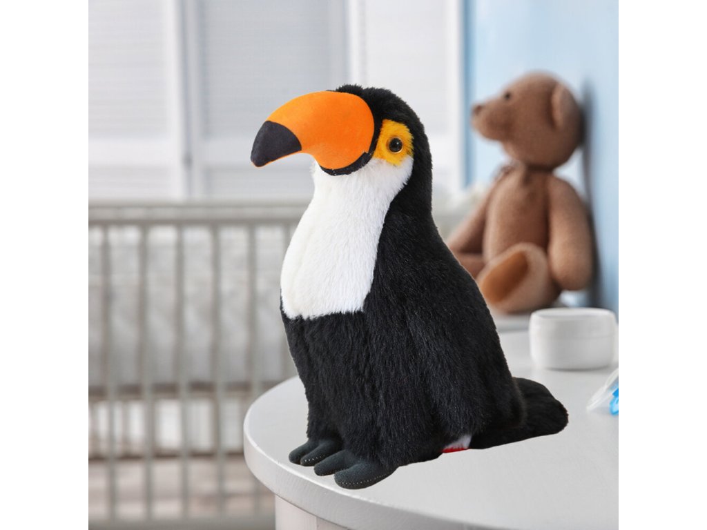 Plyšový vták tukan objíma biely 35cm