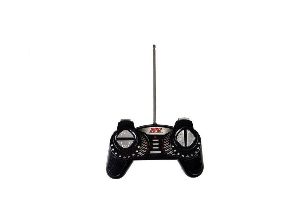 Diaľkové ovládanie R/C pre vozidlo sa skladá z čiernych prvkov kombinovaných s lesklými striebornými detailmi a tlačidlami. Každé tlačidlo má inú funkciu – auto sa dá ľahko ovládať, jazdiť dopredu/dozadu, doprava/doleva.