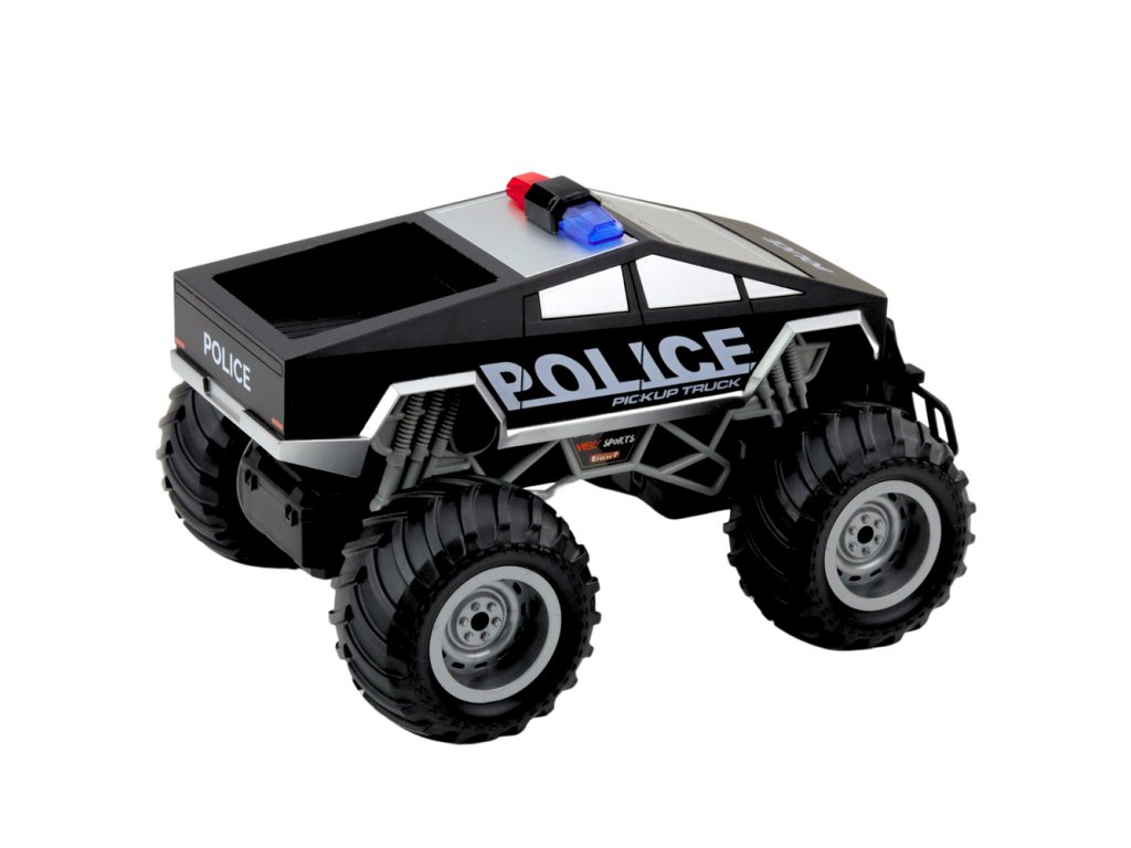 Diaľkovo ovládané terénne auto je jedinečnou ponukou pre deti, ktoré milujú dynamickú jazdu, pôsobivé funkcie a vozidlá s charakterom. Tento model v štýle policajného vozidla v mierke 1:16 vyniká agresívnym dizajnom monster trucku s veľkými terénnymi pneumatikami, pružinovým odpružením a realistickým výstražným svetlom.