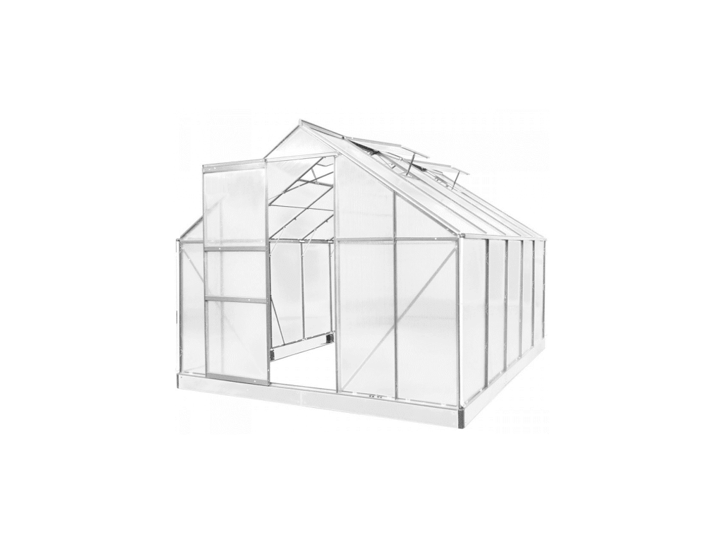 Funkčný skleník z polycarbonátu sa skvele osvedčí všade tam, kde chceme ekologicky pestovať zeleninu, ovocie a iné rastliny. Rám konštrukcie je vyrobený z hliníka, ktorý sa vyznačuje väčšou odolnosťou proti korózii, vďaka čomu skleník vydrží dlhšie. Oceľový základ udržuje celú konštrukciu stabilnú. Steny z priehľadného polycarbonátu zabezpečujú optimálnu priepustnosť svetla a jeho správne rozptýlenie. Skleník je vybavený odkvapovými žľabmi, vďaka čomu je voda účinne odvádzaná. Vďaka použitým materiálom bude záhradný skleník slúžiť dlhšie.