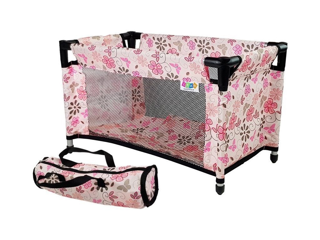 Teraz má bábika vášho dieťaťa svoj vlastný kútik a miesto na spanie. Vďaka sieťovaným bočniciam postieľky môže vaše dieťa sledovať, čo sa s bábikou deje, a mať ju na očiach. Rám je vyrobený z hliníkových rúrok s čiernymi plastovými spojkami. Súprava obsahuje prikrývku a vankúš. Celá postieľka a jej súčasti sú biele s ružovými a čiernymi kvetinovými prvkami. Dá sa ľahko rozložiť a uložiť do prenosnej tašky, takže ju môžete vždy vziať so sebou. Je vhodná pre bábiku vysokú približne 40 cm.