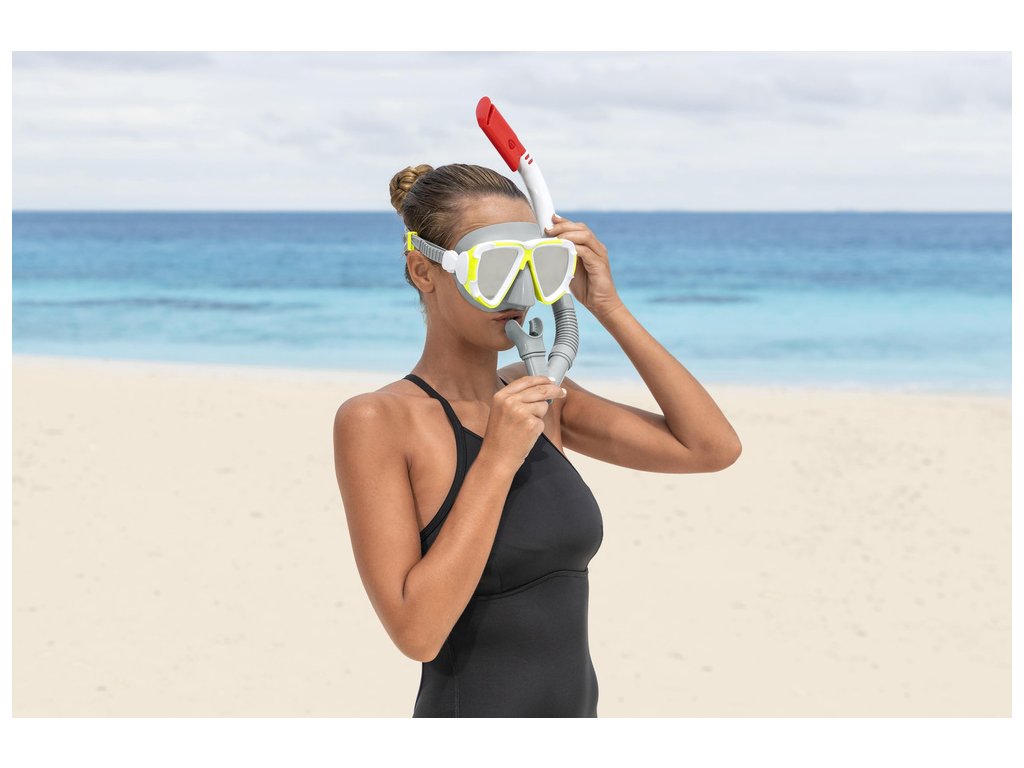 Maska je vybavená sklami, ktoré zabezpečujú dostatočnú viditeľnosť pod vodou a ochranu pred poškodením. Tesne priliehajúci golier na maske tiež zabraňuje vniknutiu vody do očí, pričom perfektne prilieha k tvári. Dýchacia trubica, ktorá je súčasťou sady, je nevyhnutným prvkom každého potápačského zážitku. Náustok je vyrobený s ortodontickou presnosťou, takže nespôsobuje nepohodlie a vy si môžete v pokoji užívať vodné atrakcie. Výrobok je určený pre osoby staršie ako 14 rokov.
