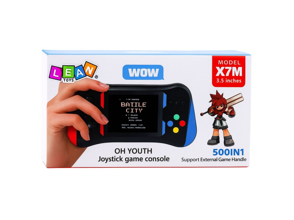 Model X7M vám tiež umožňuje hrať na väčšej obrazovke prostredníctvom funkcie synchronného prenosu – po pripojení k televízii môže hráč pokračovať v hraní v režime veľkej obrazovky. Vstavaná batéria s kapacitou 1200 mAh zaisťuje dlhú prevádzkovú dobu bez potreby častého nabíjania. Vďaka modernému dizajnu a premyslenému rozloženiu tlačidiel ponúka konzola pohodlné a intuitívne používanie.