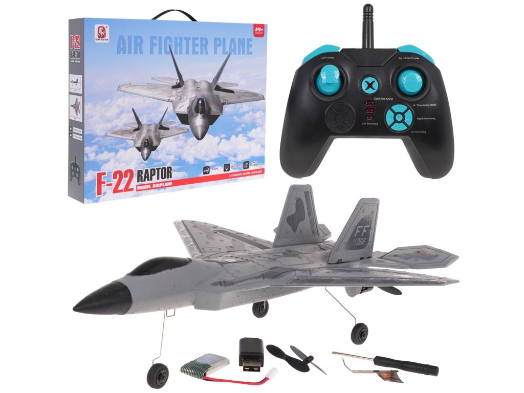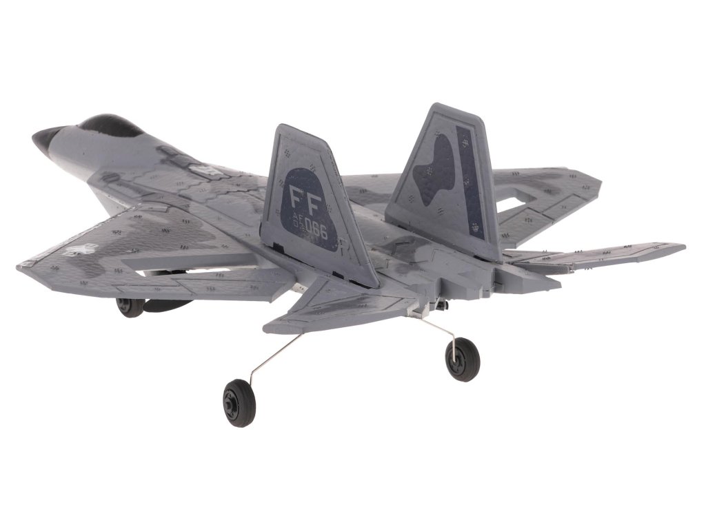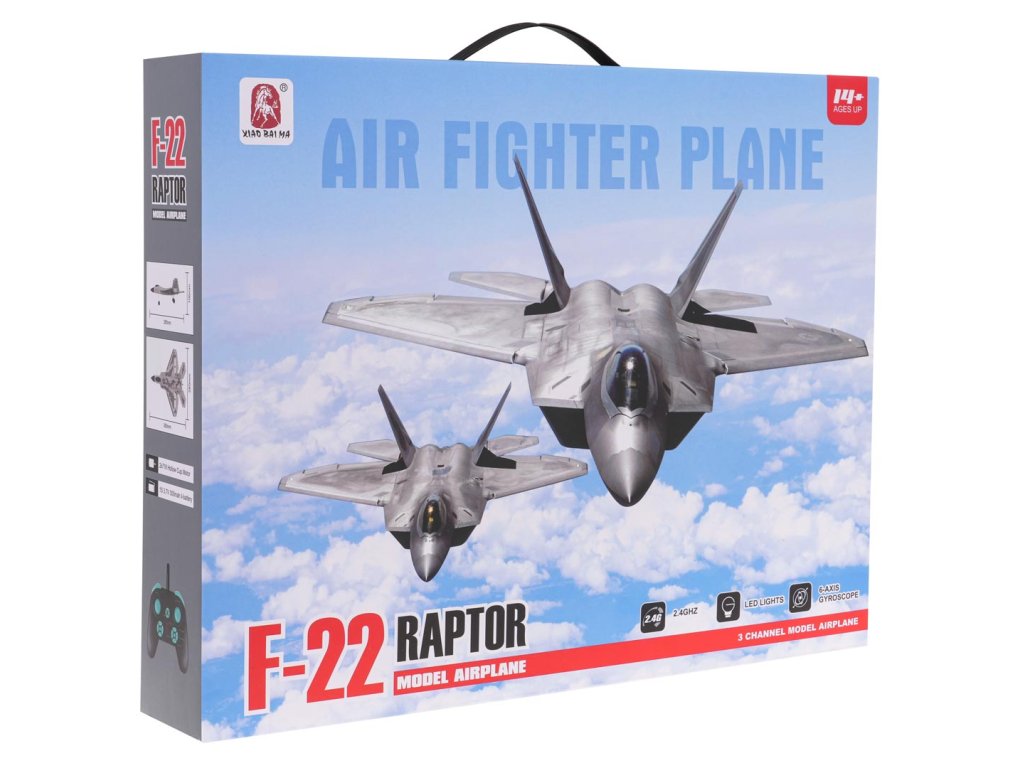 Diaľkovo ovládané stíhacie lietadlo Raptor F-22 pre deti od 14 rokov a dospelých. Lietadlo je vyrobené z ľahkého, ale odolného a pružného materiálu EPP a je ľahko ovládateľné. Je veľmi manévrovateľné a relatívne ľahko sa pilotuje. Poháňané dvoma motormi ponúka neuveriteľnú rýchlosť a zážitok z lietania. Vhodné na lietanie vonku. Doba letu je približne 10 minút. Lietadlo je poháňané 3,7 V batériou (súčasť balenia) a diaľkové ovládanie 4 x AAA batériami (nie sú súčasťou balenia).