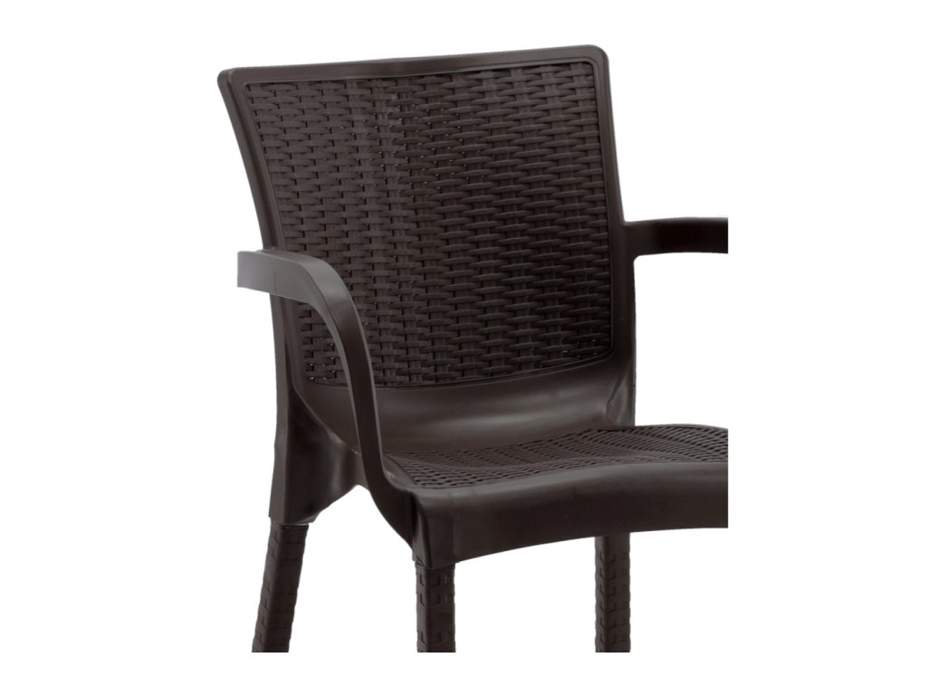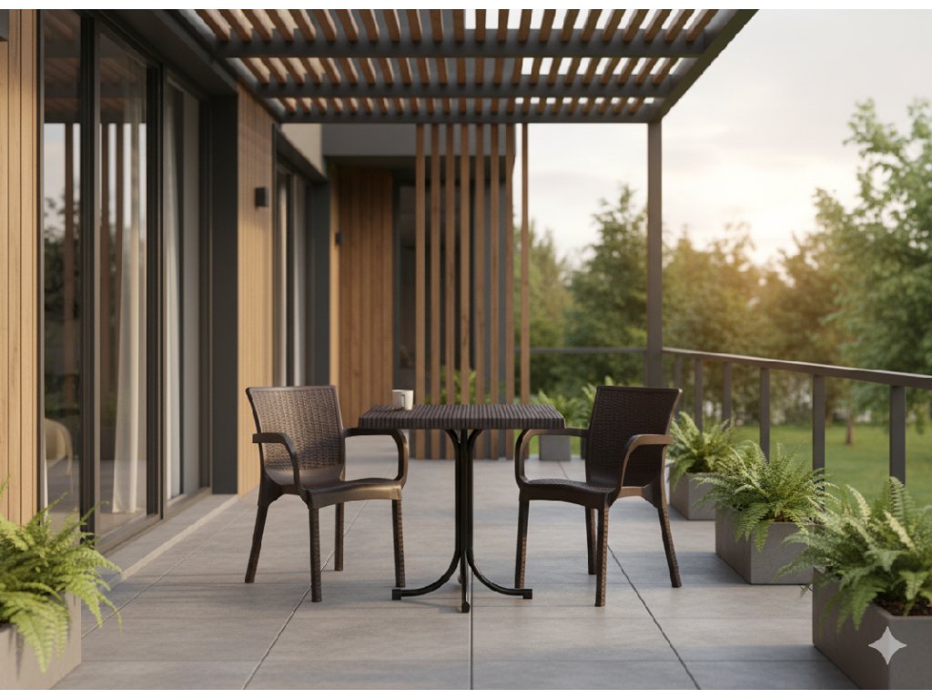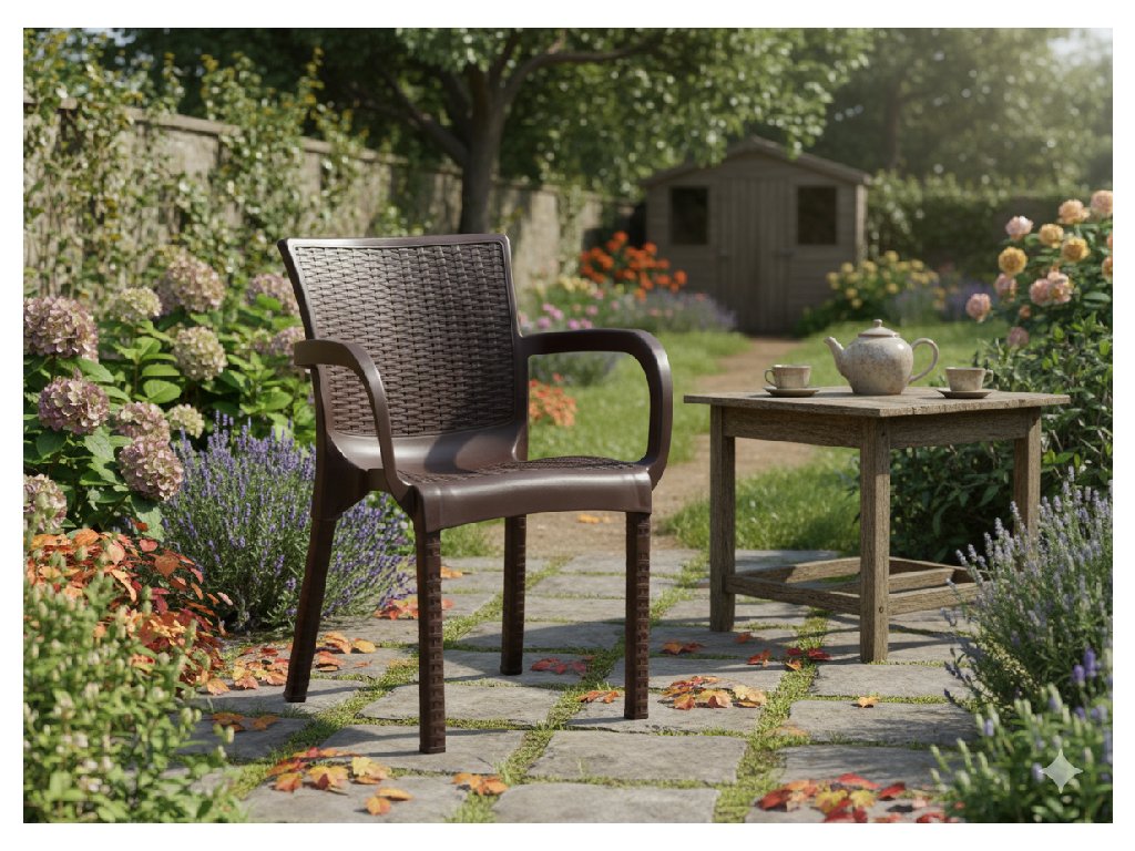 Vnesiete do svojho vonkajšieho priestoru pohodlie a nadčasový štýl. Táto hnedá plastová záhradná stolička s ratanovým vzorom kombinuje klasickú estetiku s modernou funkčnosťou a vytvára tak ideálne miesto na relaxáciu na terase, balkóne alebo v záhrade ☀️🌳