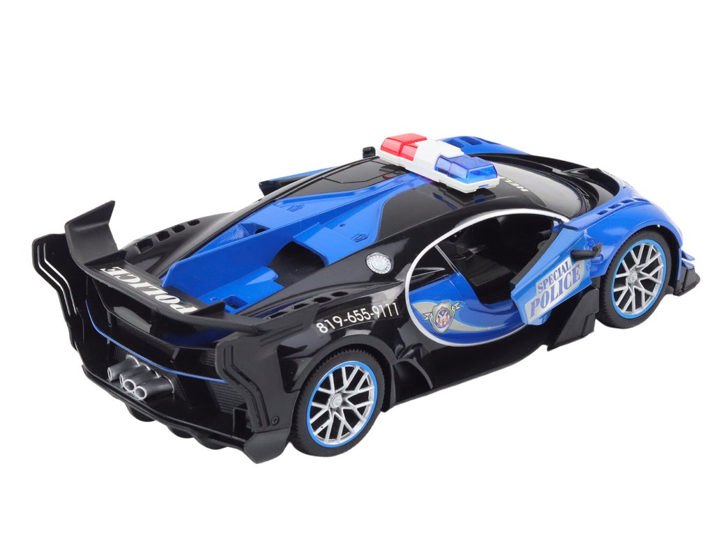 Diaľkovo ovládané policajné auto v mierke 1:12 v modrej farbe je výnimočná hračka, ktorá zaujme nielen svojím realistickým vzhľadom, ale aj bohatými funkciami a interaktívnymi schopnosťami.