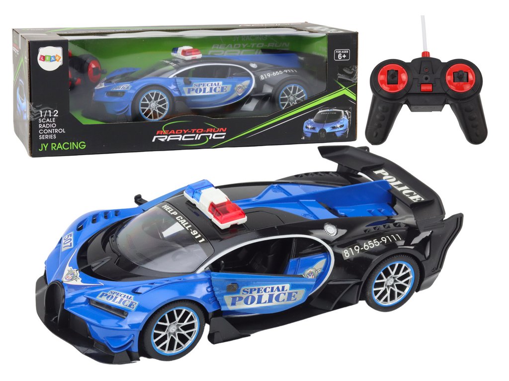 Diaľkovo ovládané RC policajné auto v mierke 1:12, modré