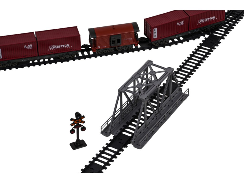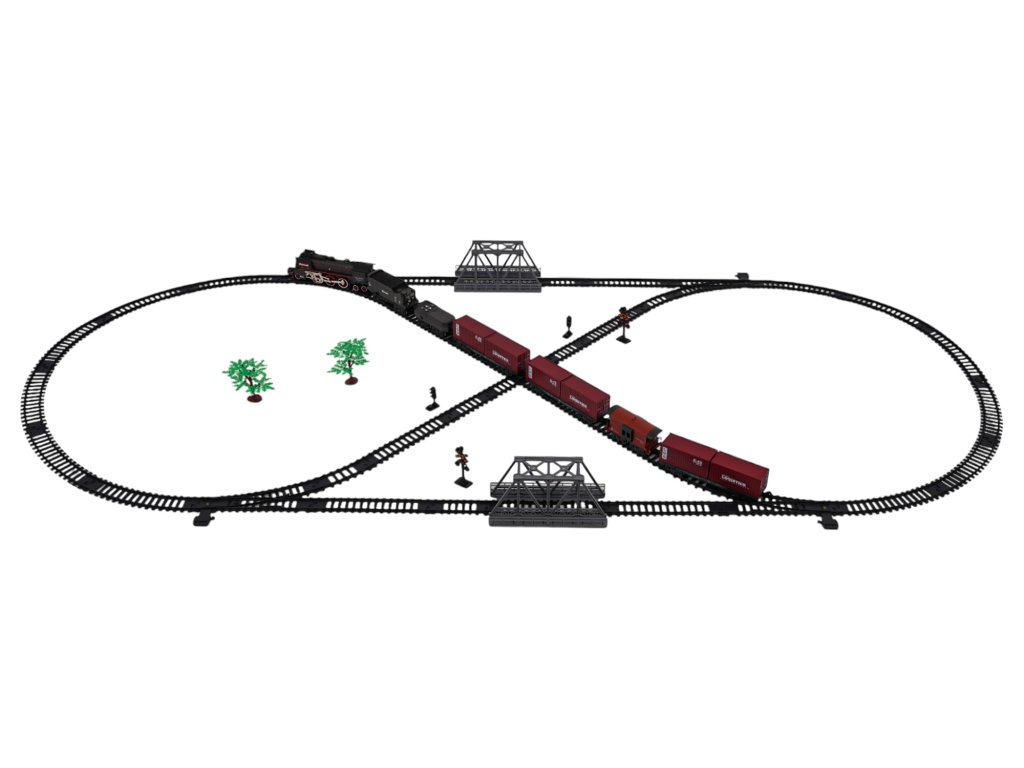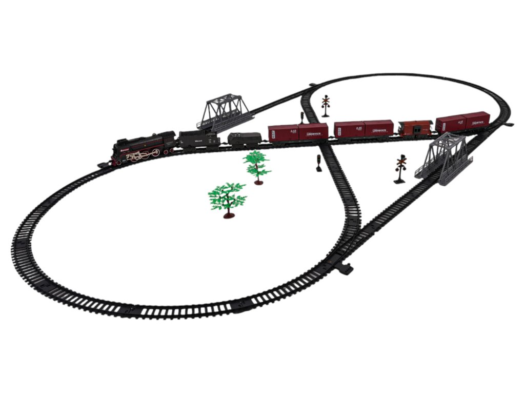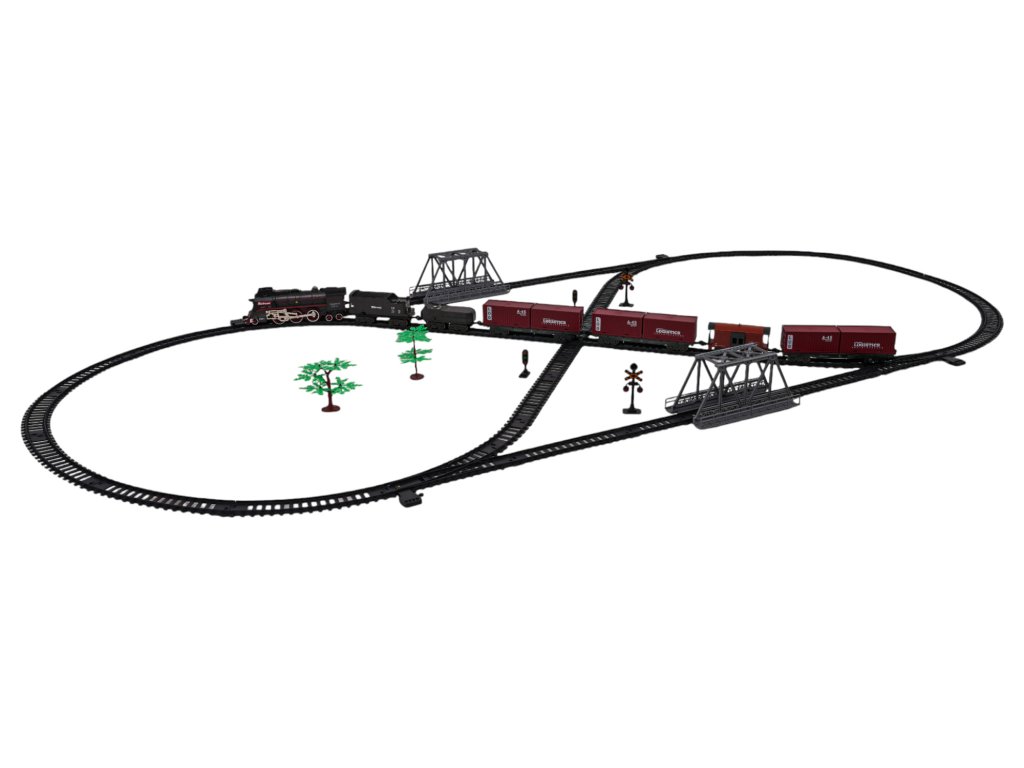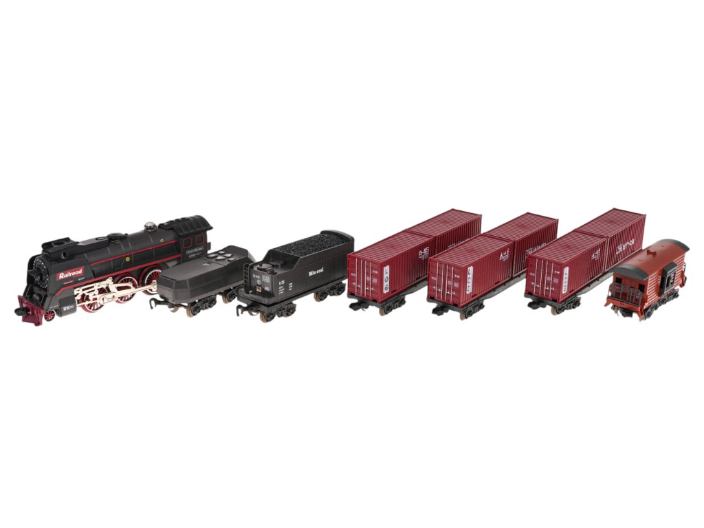 - lokomotíva, - osobný vagón, - uhoľný vagón, - pilotný vozeň, - 3 x kontajnerové vagóny, - koľajové komponenty, - 2 mosty, - 2 značky, - 2 stromy, - vodná pipeta, - USB nabíjací kábel, - návod. |