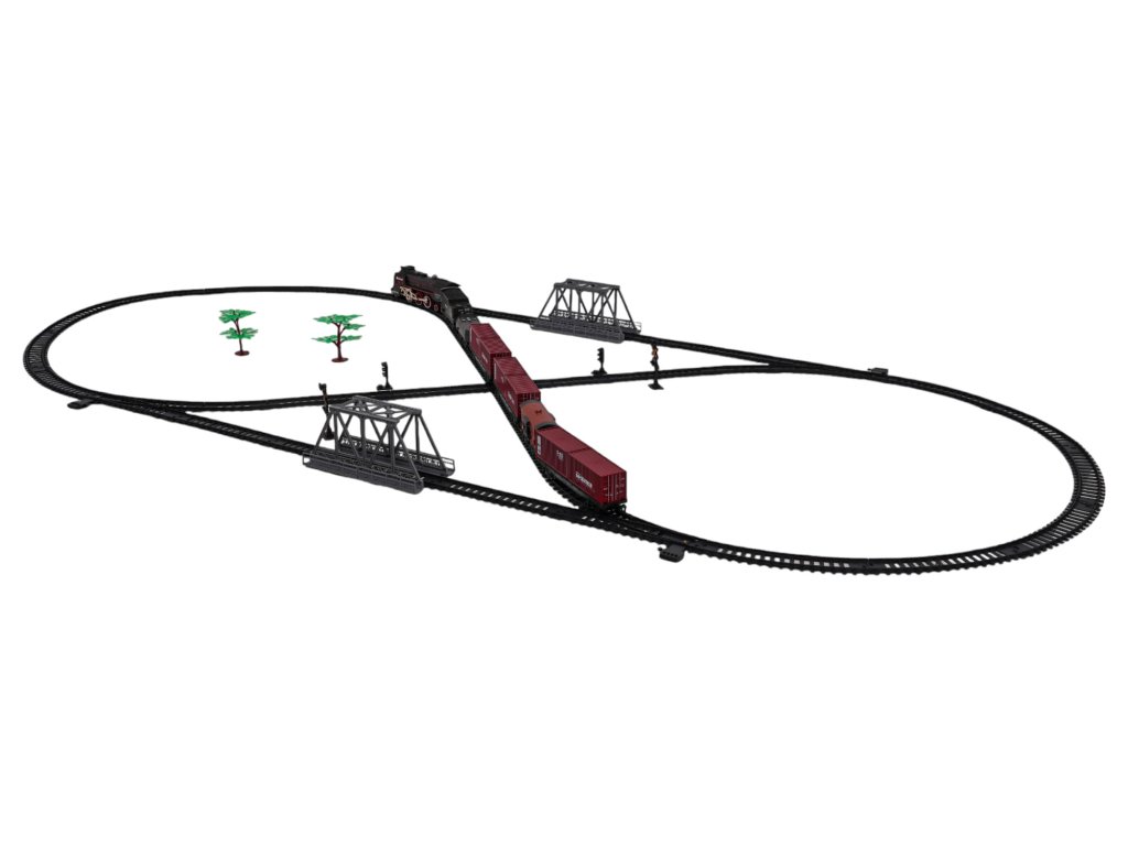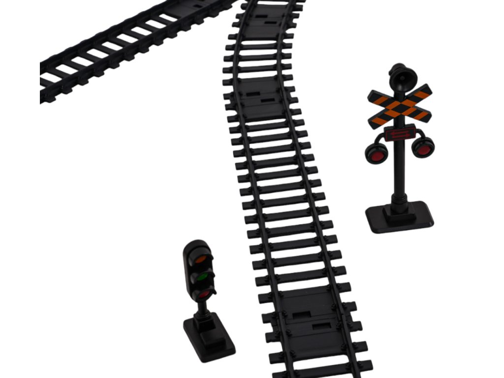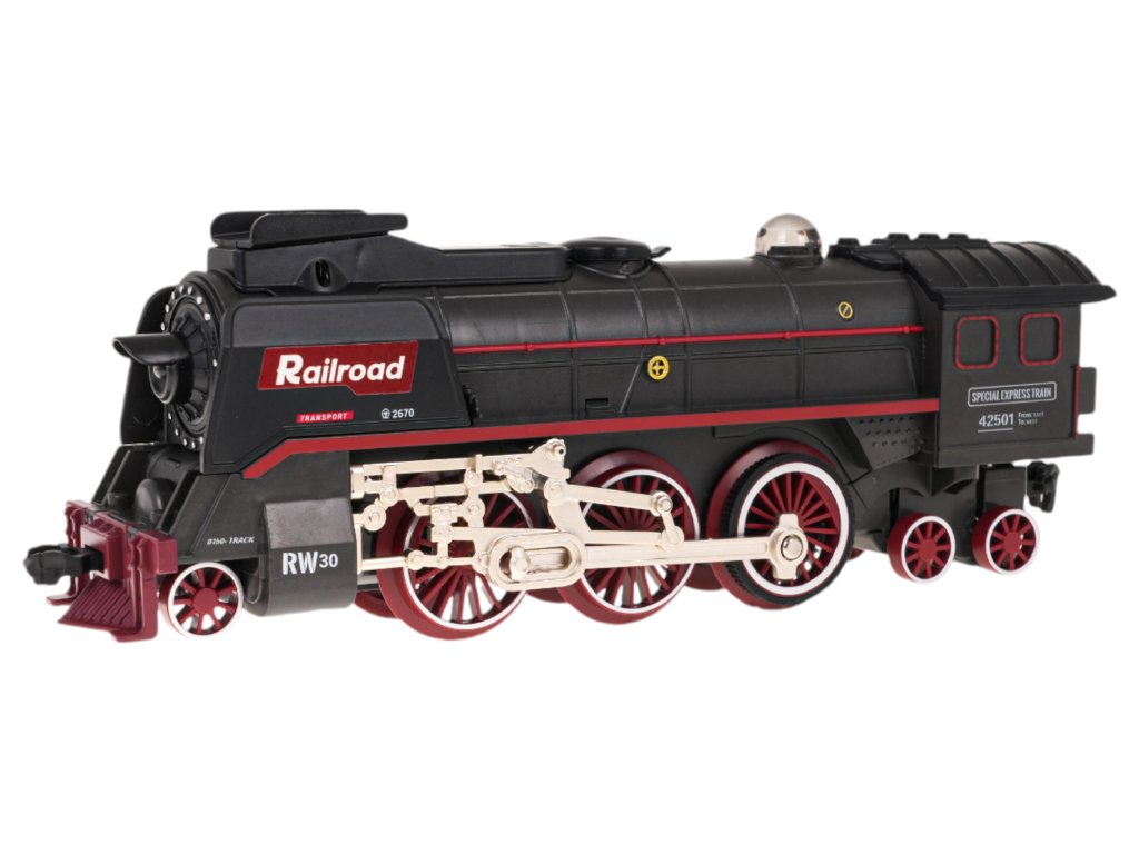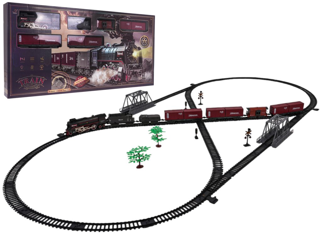 Táto retro vlaková súprava s dymom a zvukmi jazdy, vrátane koľajníc, je vhodná pre deti od 3 rokov. Hračka je napájaná 3,7 V batériou (súčasťou balenia) a diaľkové ovládanie vyžaduje 2 x AA 1,5 V batérie (nie sú súčasťou balenia). Diaľkové ovládanie je zároveň jedným z vagónov. Počas jazdy lokomotíva vypúšťa dym z komína a bokov (po naplnení vodou – pipeta na vodu je súčasťou sady) a rozsvieti sa aj svetlo umiestnené v prednej časti. Koľajnice sa ľahko spájajú, vďaka čomu sú bezpečné a odolné pri používaní. Vlastnosti sady: - vhodný pre deti od 3 rokov, - dym vychádzajúci z komína a bokov, - svetlo v prednej časti lokomotívy, - zvuky jazdy, - pohybuje sa dopredu a dozadu. |