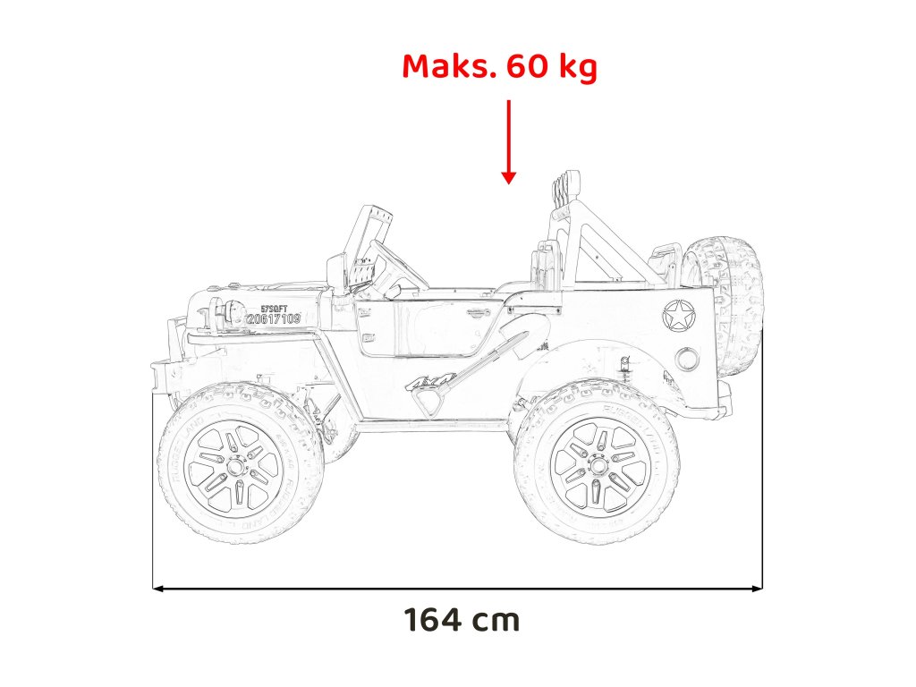 | Rozmery vozidla: | Dĺžka 164 cm,Šírka 96 cm,Výška 94 cm |